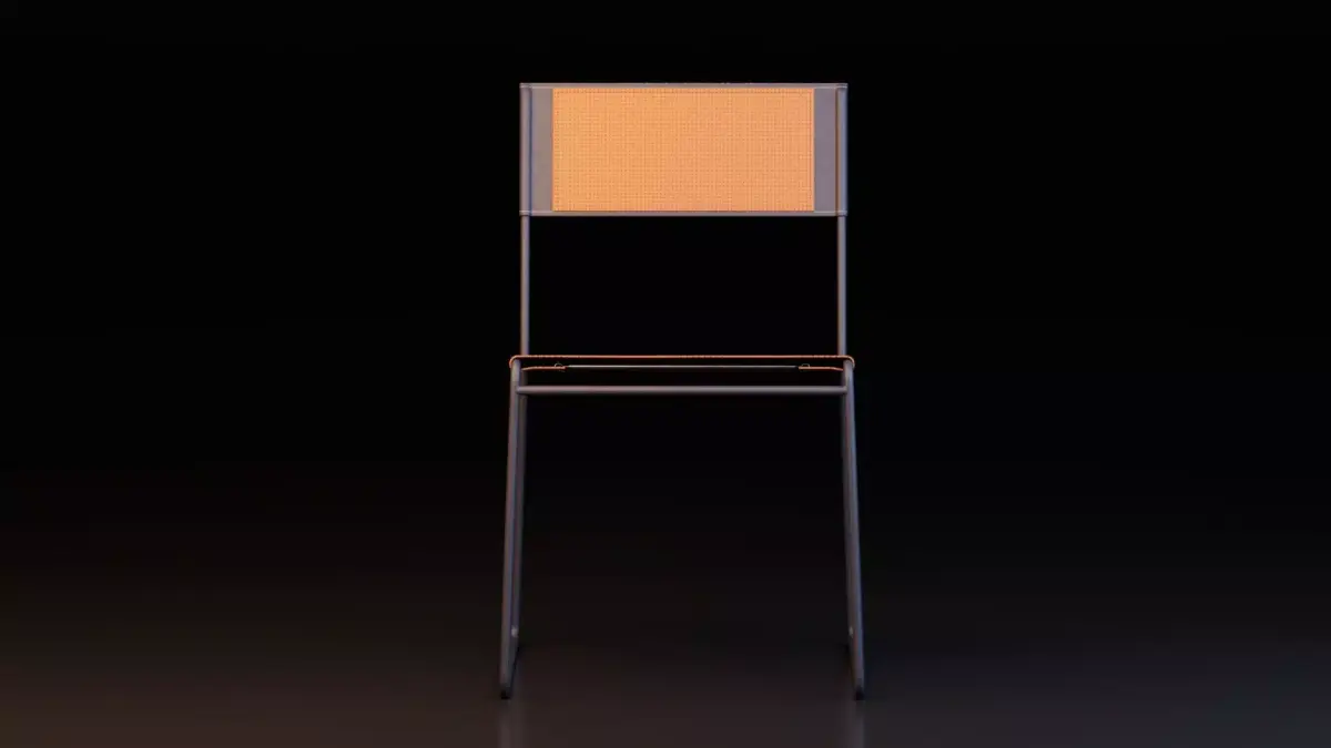 The chair combines clean geometric lines with subtle material detailing. The metal frame has a smooth industrial finish, while the seat and backrest feature textured upholstery, providing a strong balance between realism and visual clarity. Its lightweight and elegant design makes it ideal for close-up product shots as well as repeated placement in large interior scenes.