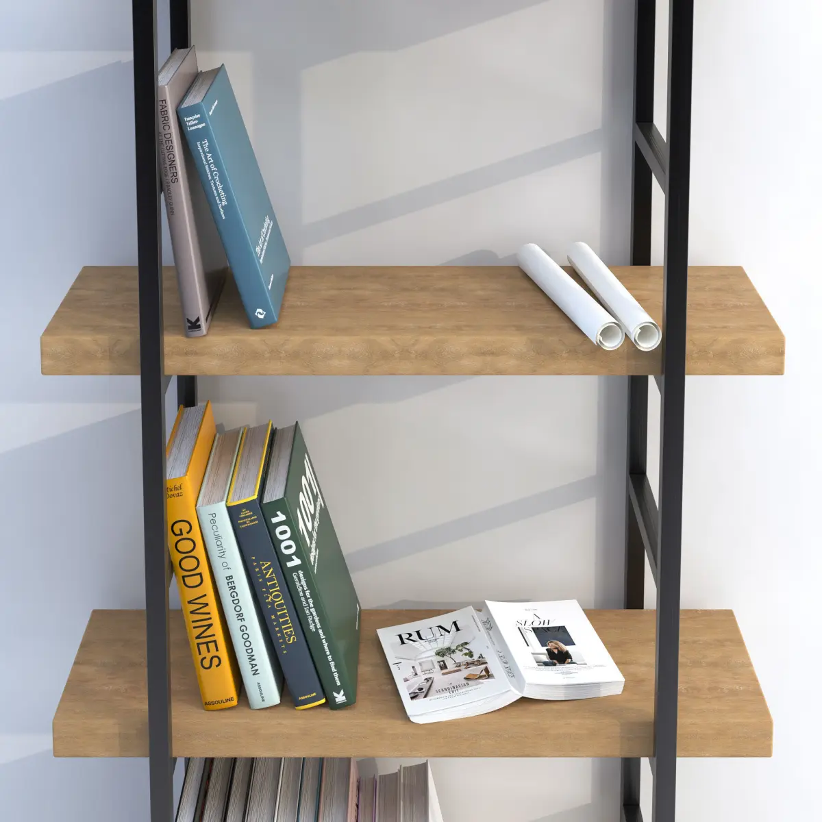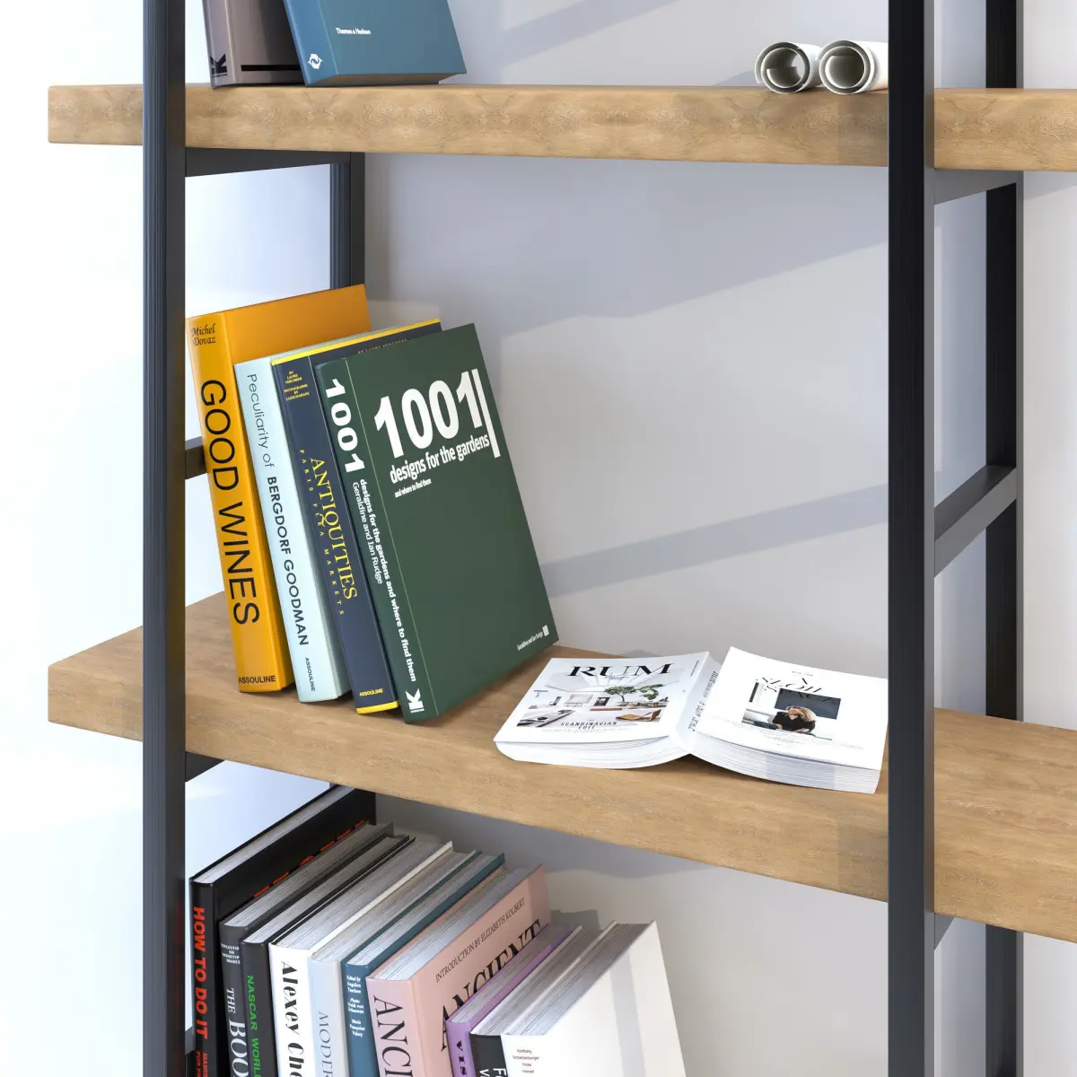 Modern minimal bookcase with an open book 3D model
