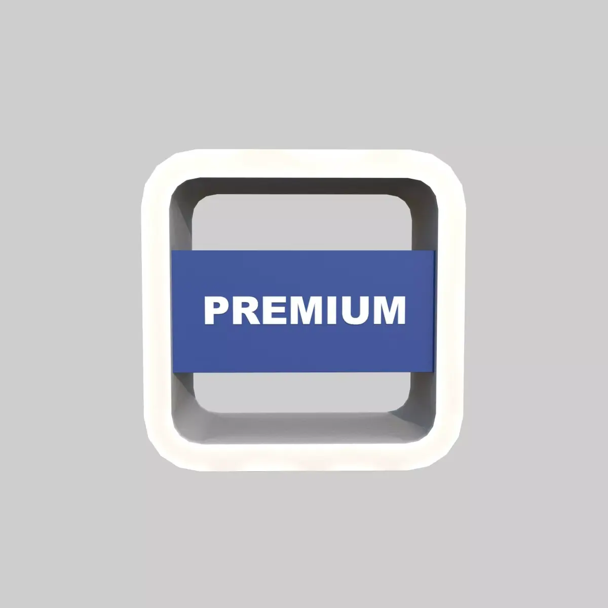 This model features a minimal cubic frame structure with soft edges and a central panel area, making it ideal for displaying text, branding, or objects. Its neutral design allows it to fit seamlessly into industrial, retail, or futuristic environments.