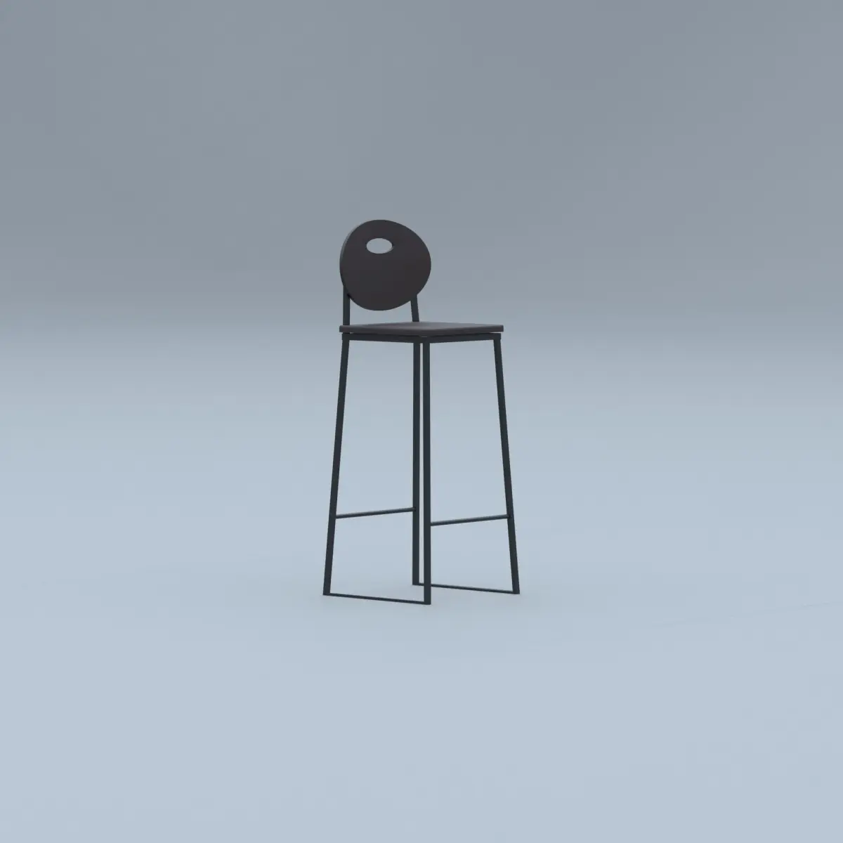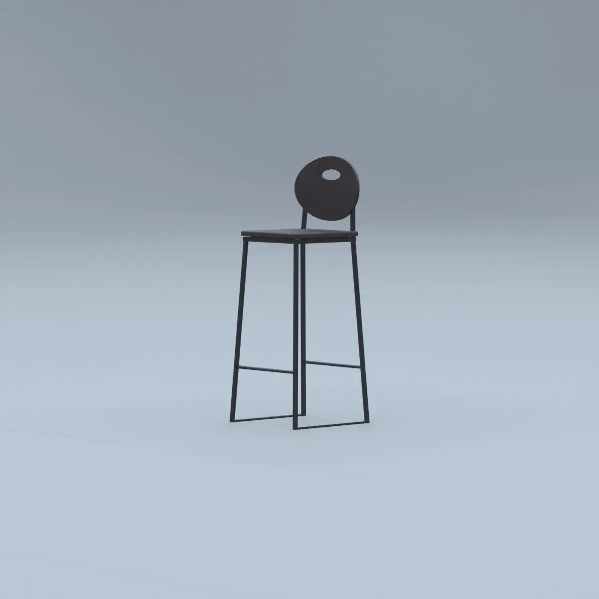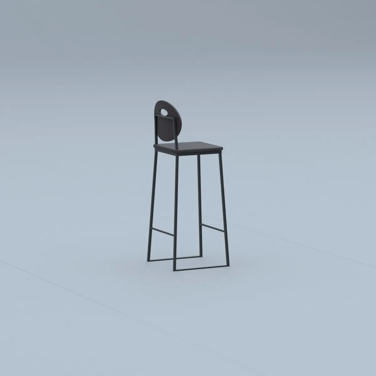 This modern minimalist bar stool features a sleek and contemporary design, perfect for any stylish kitchen or bar area. The stool is constructed with a sturdy metal frame and a circular seat with a unique cut-out backrest, providing both comfort and aesthetic appeal. The tall, slender legs are reinforced with crossbars for added stability. Its black finish adds a touch of elegance, making it a versatile piece that can complement various interior styles. Ideal for both residential and commercial use, this bar stool is a blend of functionality and modern design.