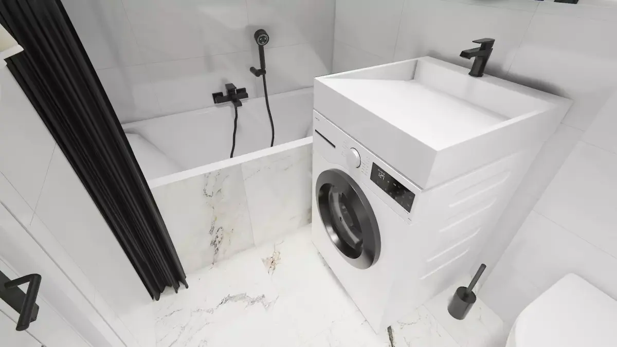 Space-Saving Setup: Sink integrated directly above the washing machine (an ideal compact solution).
