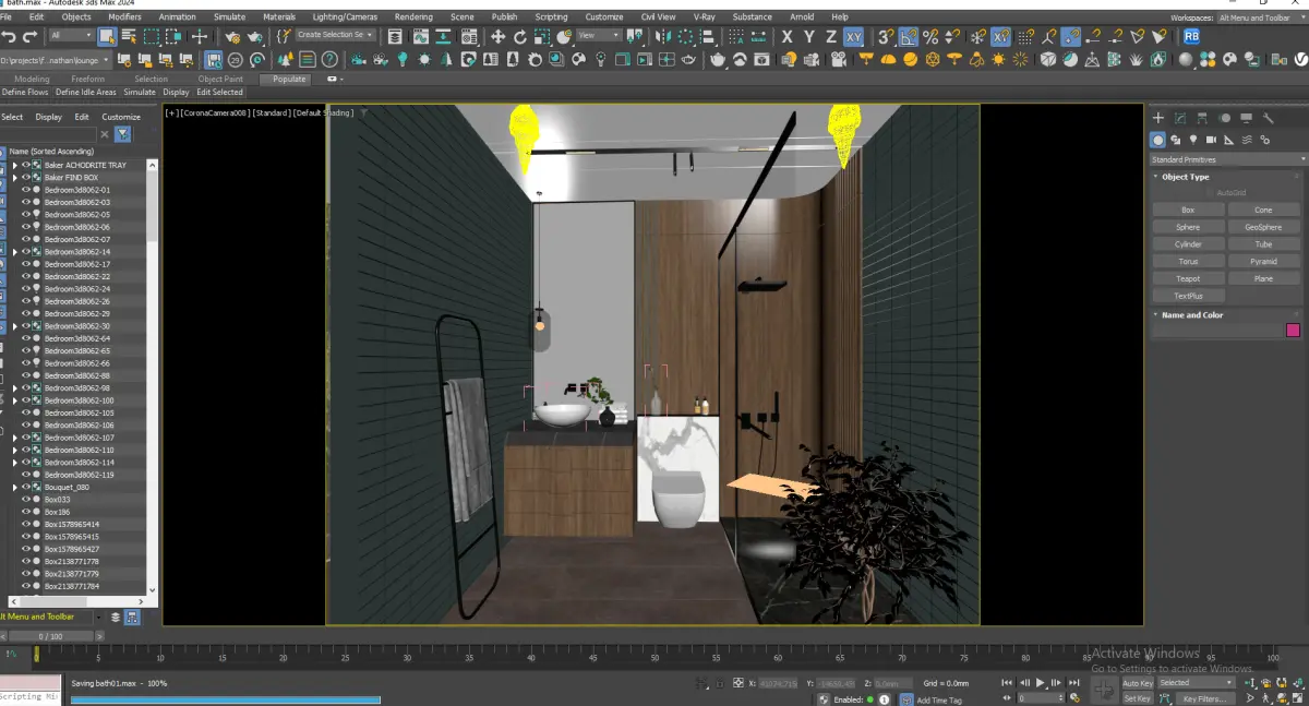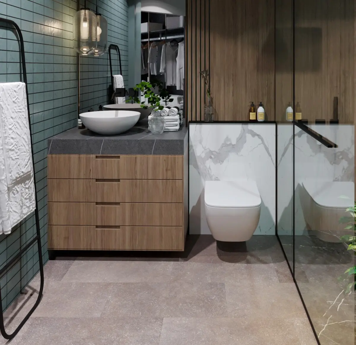 Modern Minimalist Bathroom Interior ScenePresenting a meticulously crafted 3D interior scene showcasing a modern and minimalist bathroom design, perfect for architectural visualization, interior design projects, and high-quality rendering. This professionally modeled scene captures contemporary elegance with a focus on clean lines, natural materials, and sophisticated lighting.The scene features a thoughtfully designed layout including a wall-mounted toilet, a sleek vanity with a basin and wooden drawers, a stylish glass shower enclosure, and a distinctive towel rack. The material palette combines cool-toned subway tiles on the walls, a luxurious marble accent for the toilet area and vanity top, warm wooden paneling, and a neutral-toned floor, creating a harmonious and inviting atmosphere.Accents like a potted plant, decorative bottles, and carefully placed lighting fixtures enhance the realism and visual appeal of the scene. The scene is fully textured and optimized for realistic rendering, ensuring stunning results for your projects.Key Features:High-Quality 3D Models: All elements are precisely modeled with attention to detail, ensuring realistic proportions and shapes.Realistic Materials & Textures: PBR-ready materials, including detailed textures for tiles, wood, marble, glass, and ceramics, for authentic visual representation.Optimized Geometry: Clean quad-based mesh, optimized for smooth subdivision and efficient rendering.Well-Organized Scene: Logically named objects and materials for easy navigation and customization.Ready-to-Render Lighting Setup: Includes a professional lighting setup to achieve the mood and realism seen in the preview images.Versatile Use: Ideal for architectural visualization, interior design presentations, virtual tours, and product showcases.Perfect for:Architectural Visualization ArtistsInterior DesignersGame Developers Marketing Agencies Anyone needing a high-quality, modern bathroom scene for their projects.