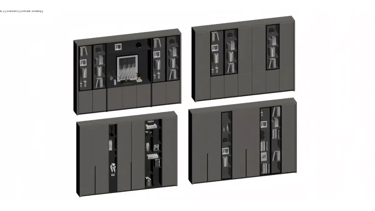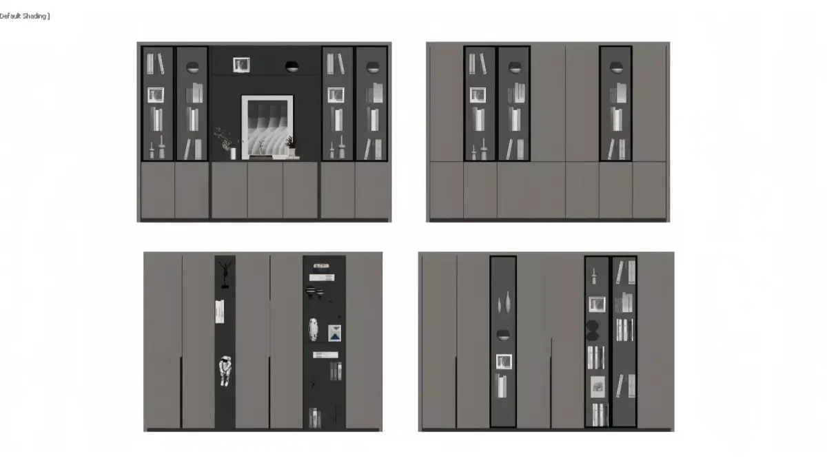 This is a set of full-wall custom-built bookcases designed in a modern minimalist style. Featuring a light gray as the main color scheme, they are paired with black metal frames and glass doors, and integrated with recessed strip lights, thus serving both storage and display purposes.The cabinet body adopts a combination of open shelves and closed cabinet doors, allowing flexible placement of books and decorative ornaments. Suitable for spaces such as living rooms and studies, these bookcases not only meet storage needs but also enhance the home style with a light luxury texture. They are practical yet aesthetically pleasing furniture pieces for studies or living rooms in whole-house customization.