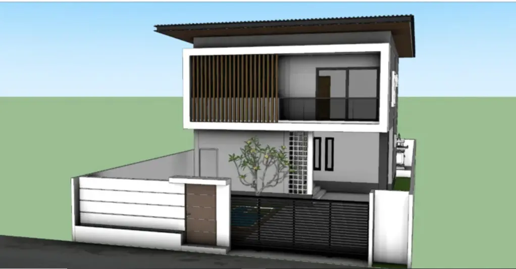 This is a high-quality 3D model of a modern house, designed using SketchUp. It features a clean, minimalist architectural style with sharp lines, large windows, and an open layout – perfect for visualization, concept design, games, or animation.
