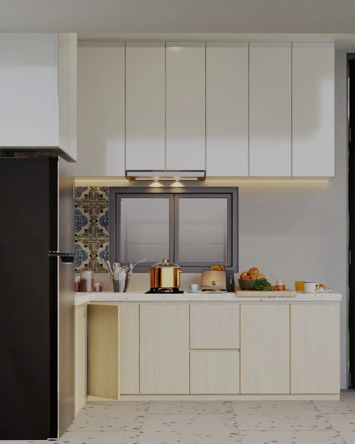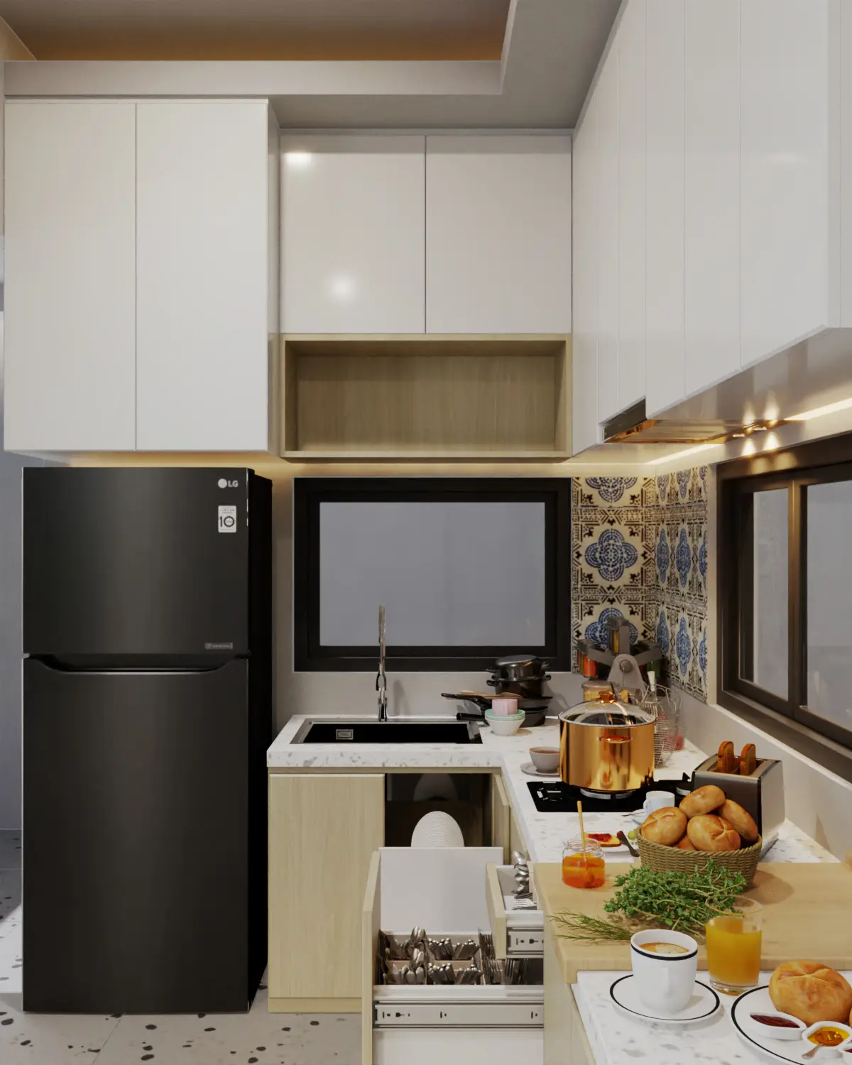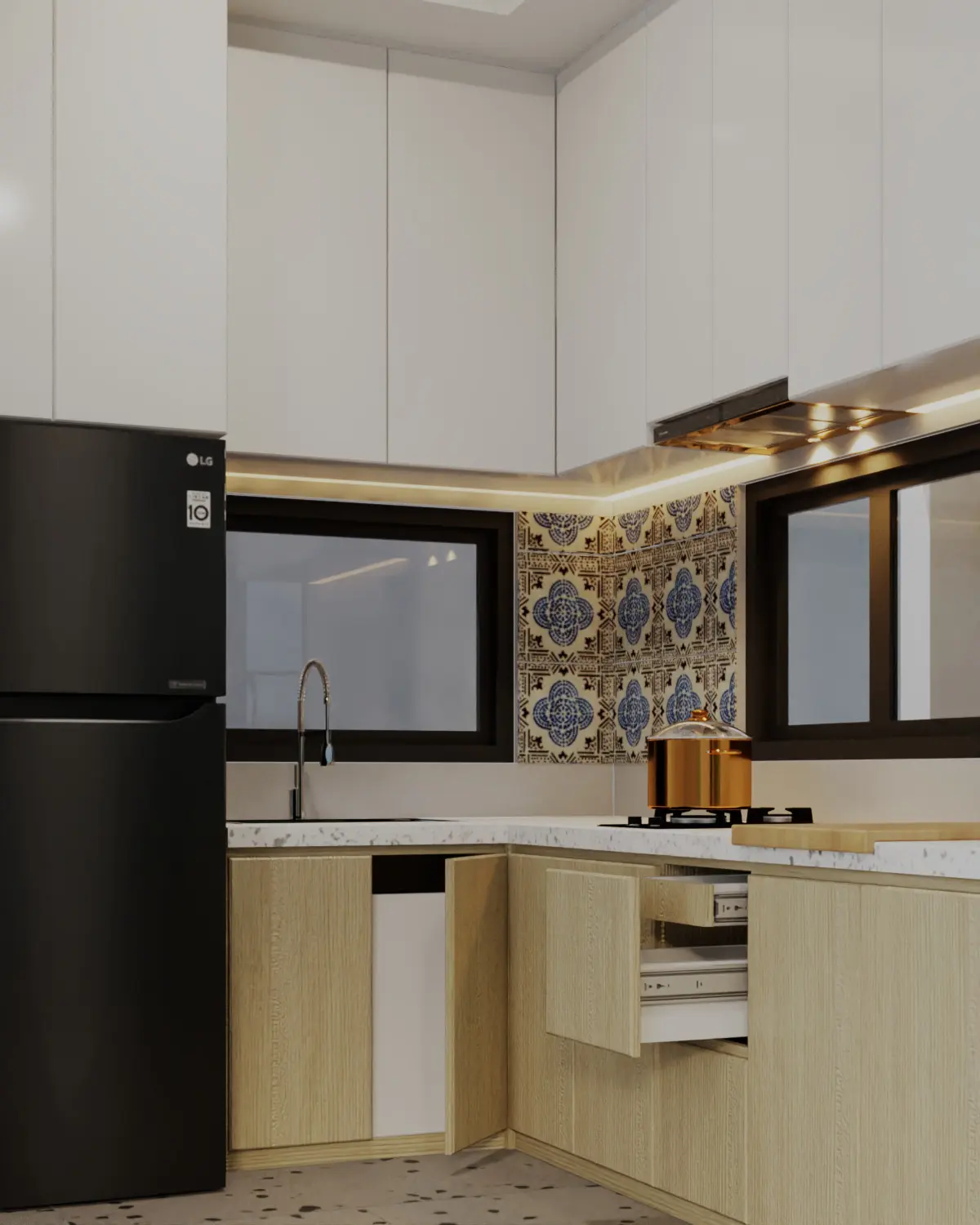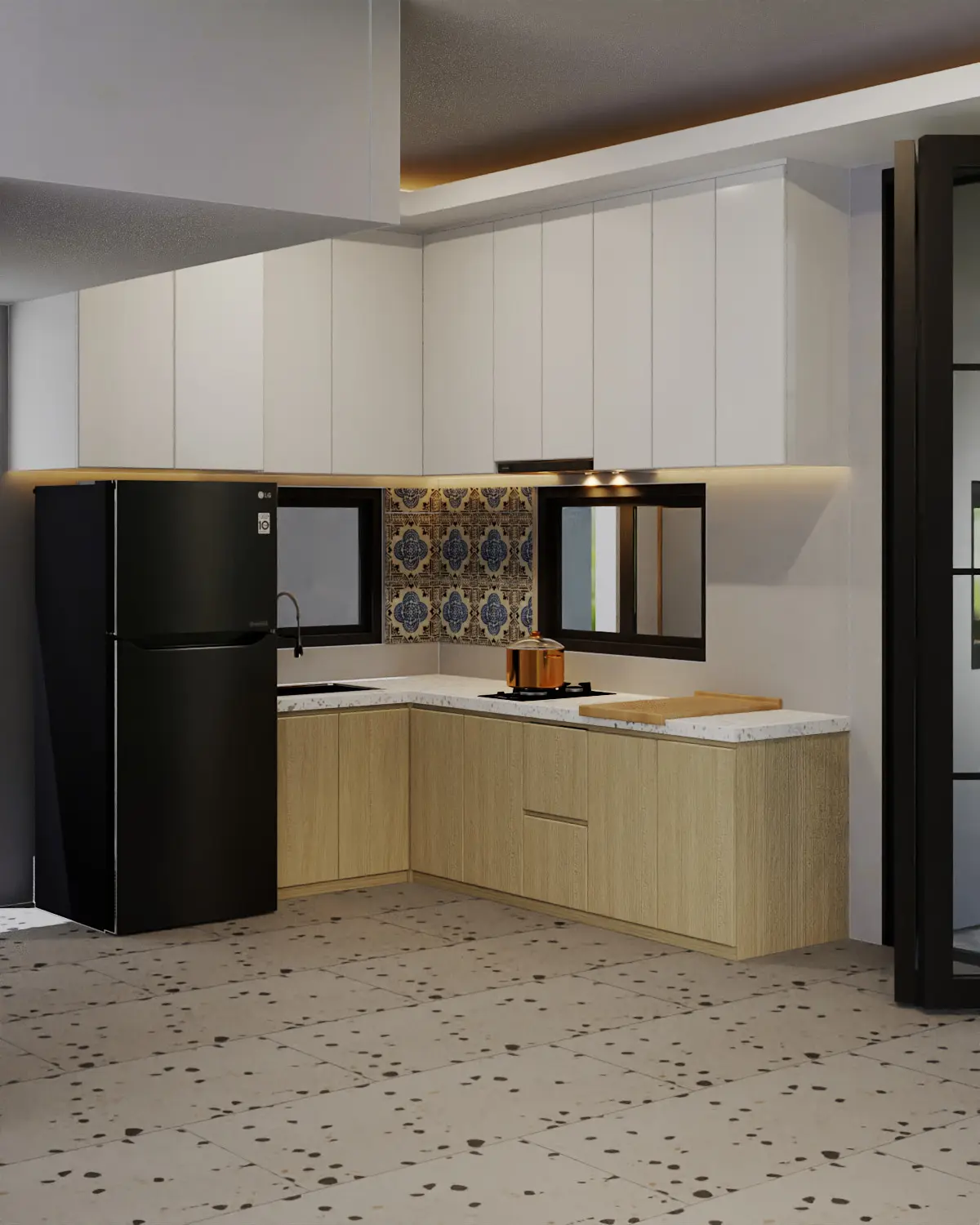 Enhance your architectural visualization with this high-quality Modern Minimalist Kitchen 3D Model. Designed for professional rendering, this kitchen asset features a sleek L-shaped layout, premium wood-textured cabinetry, marble countertops, and a fully detailed cooking area. The intricate backsplash tiles, modern appliances, and functional storage solutions add a realistic touch to your project.