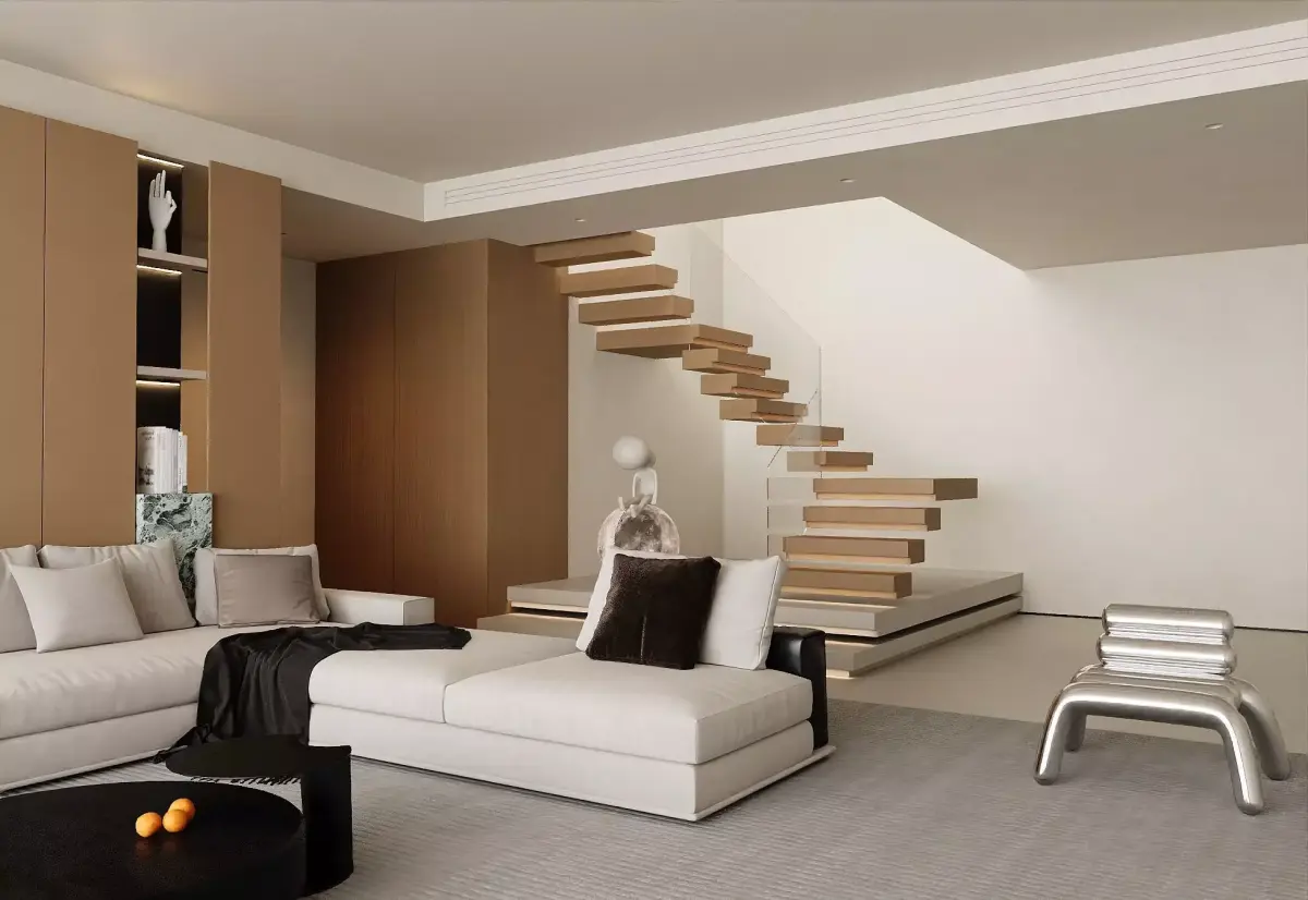 Modern Minimalist Luxury Lounge With Floating Staircase 3D model