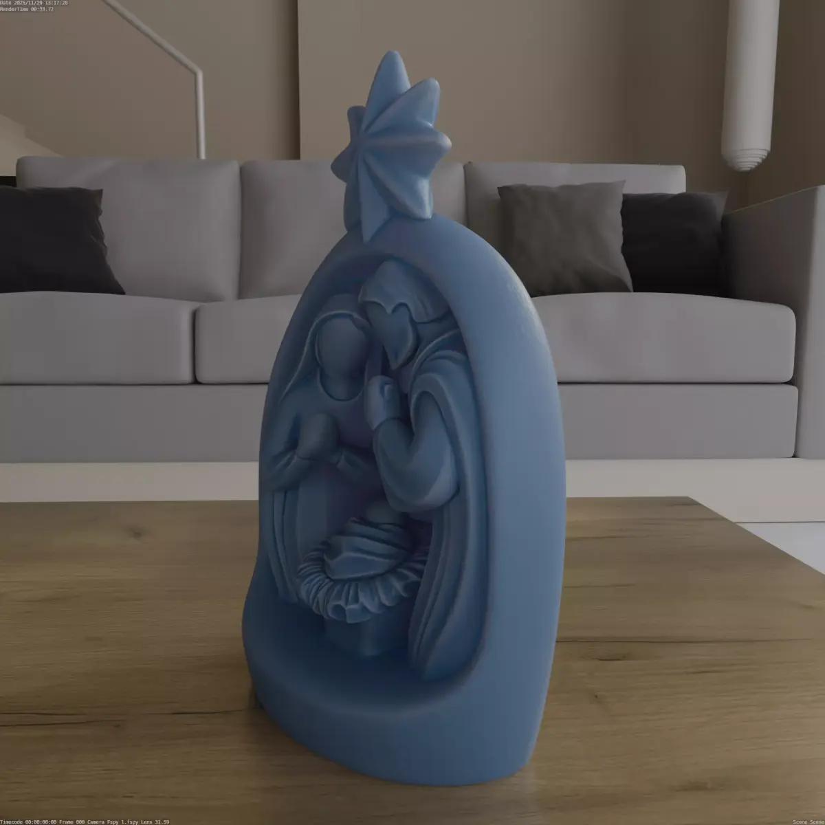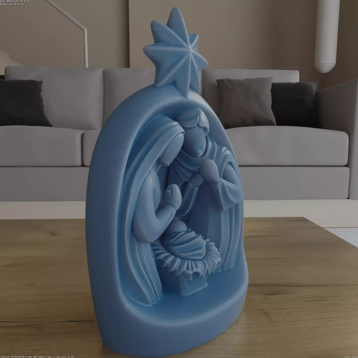 This is a beautiful 3D model of the Holy Family for Christmas. It shows Mary, Joseph, and Baby Jesus under a star in a smooth and modern style. This STL file is ready to print and makes a perfect holiday decoration for your home.