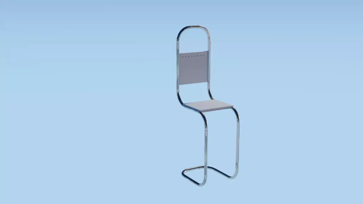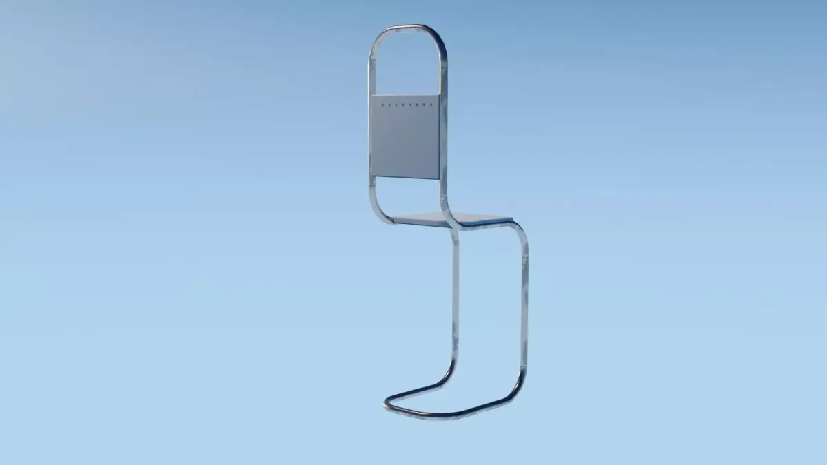 A sleek and modern tubular metal chair featuring a minimalist, stylized design. This model combines smooth curved metal framing with simple flat seat and backrest panels, making it ideal for contemporary interior scenes, product visualization, or architectural renders.The unique continuous frame structure gives the chair a futuristic and elegant look, perfect for modern environments such as studios, galleries, cafes, or conceptual designs.The model is optimized for high-quality rendering and can be easily integrated into real-time or offline projects.