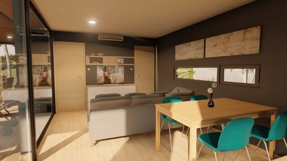 Modern designed mobile home,tiny house, vacation house on 38 m2 with terrace and fully furnished interior. Model is produced in Slovenija by my company and can be ordered and placed any where in europe. Unique designed,modern,highly detailed model with lot of useful 3D models and furniture in it.Model contains house with all the furniture in ,living room,kitchen ,bedroom,bathroom and terrace.additional models (shower,sink,faucet,toilet,bath,sofa,bed TV,outdoor lounge,pots,windows,..)included. And also lot of decoration that is also included.Link for 360 view tour: .On the front of the house ,there is big and nice terrace with outdoor furniture .This model have big glass sliding doors.Kitchen is actually designed for a known customer and contains Owen,induction plate ,hood,sink,faucet,decoration... Suitable for sea site area as for the mountain areas and all kind of camping resorts. Model is done with sketch up and rendered with lumion. But best goes with sketch up. 3DS Max users can import sketchup 2008 file format or fbx or obj. All textures appliances and furniture equipment is in high resolution,have been checked and are included in scene.Textures are compresed in zip file.Model is easy to manipulate and ready to render with lumion. Real world scale and exact proportions cm. Realistic and correctly scaled ! • Excellent polygon & texture efficiency Purchasing this model , you get format :skp or ask designer for different formats.But best goes with sketch up. Additional Textures provided with the model:obj,fbx,dwg,3ds,skp,glb...or ask for any other