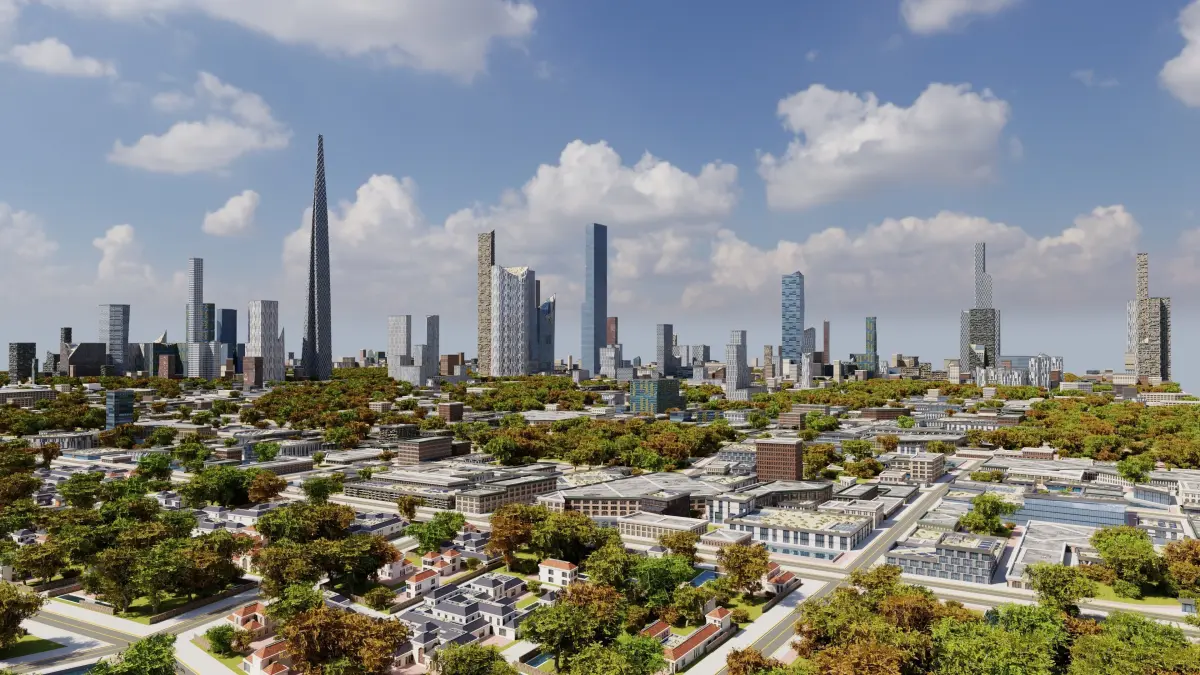 - -The city as configured in the renders is about 3 bij 3KM.