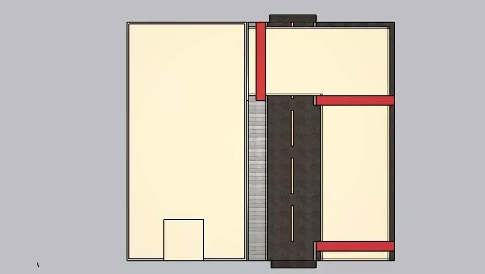 Clean Geometry: Optimized for performance and ease of use.Modular Design: The aesthetic allows it to fit into modern or futuristic cityscapes.Visual Interest: High-contrast color palette (Neutral beige/grey with industrial red accents).Interior Potential: Large glass windows allow for interior visibility or basic room staging.