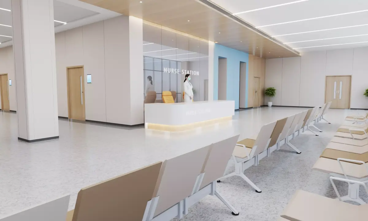 Professional Modern Hospital 1F Lobby & Nurse Station SceneA premium, photorealistic 3D model of a modern hospital entrance lobby and nurse station. This scene is meticulously designed with a warm wood-accented ceiling, integrated professional lighting, and a clear wayfinding signage system (1F), perfect for high-end healthcare architectural visualizations and medical simulations.Key Features:Functional Zoning: Includes a complete nurse station desk, multiple rows of modern waiting chairs, and detailed architectural signage.High-End Atmosphere: Features a sophisticated interior design with light wood textures and a sterile, professional clinic environment.Ready-to-Render: Fully set up with V-Ray materials, professional lighting, and camera settings for 3ds Max.Multi-Format Export: Optimized FBX and OBJ formats included for seamless integration into Blender, Maya, Unity, and Unreal Engine.Technical Specifications:Native Software: 3ds Max (V-Ray materials included)Export Formats: .MAX, .FBX, .OBJScale: Real-world scale (Metric units)Textures: All high-resolution PBR textures and signage maps included.