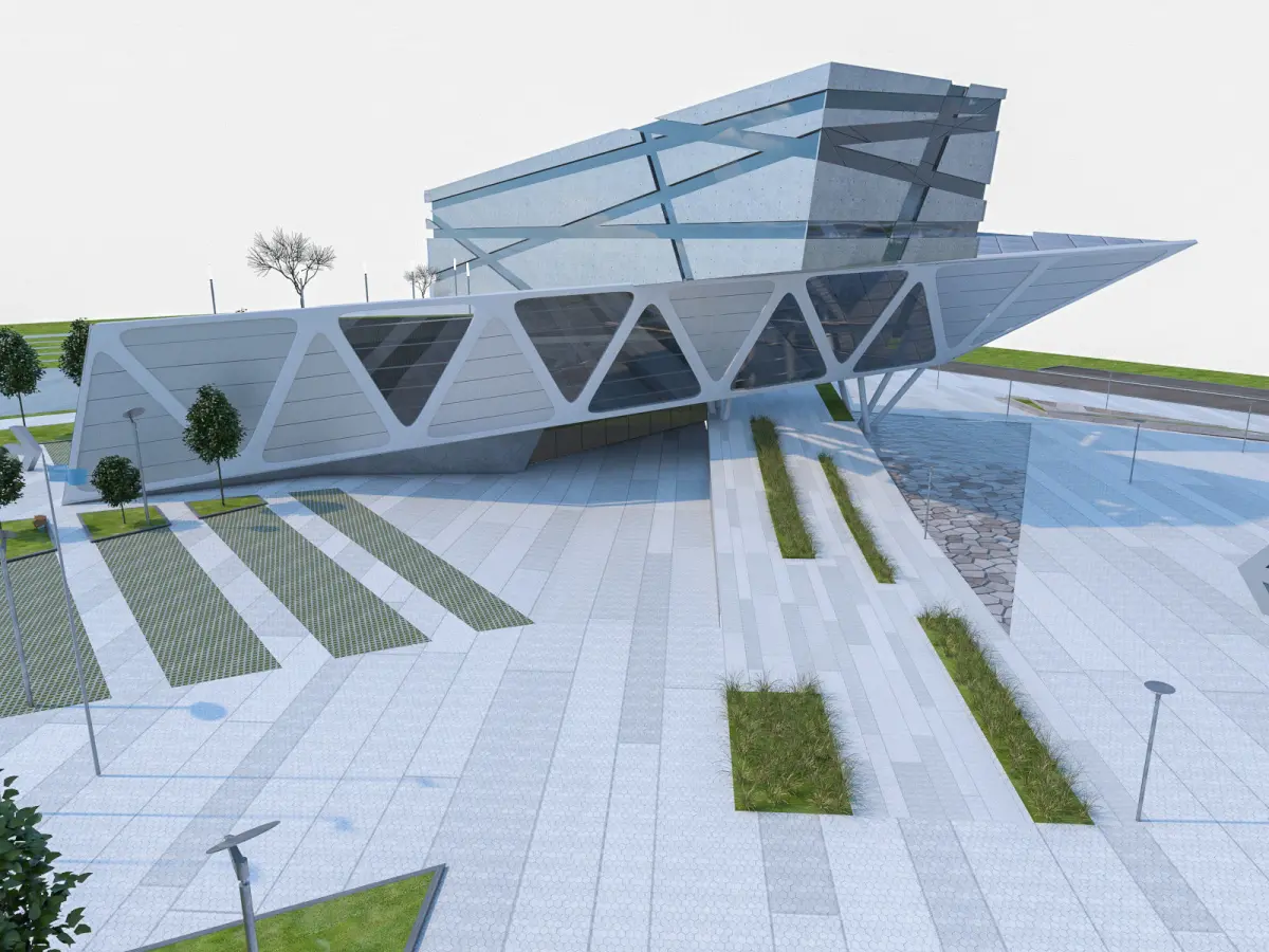 Modern Museum Building Low-poly 3D model