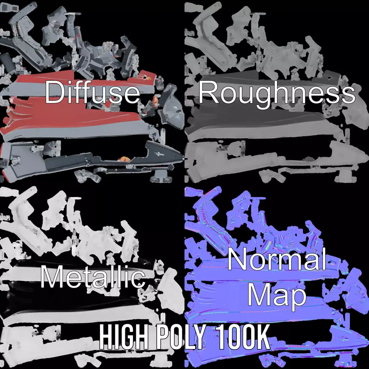 This Modern Naval Destroyer model pack features an intricately designed military vessel, ideal for simulations, strategic games, or naval showcases. Each model has 3 levels of detail: low-poly (1000 triangles for mobile), middle-poly (10,000 triangles for environment), and high-poly (100,000 triangles), which allows for the use of this model in production rendering (such as 3ds Max, Maya, Cinema 4D, Blender, Vray/Corona/Cycles, and all other), game engines (Unity and Unreal compatible), and interactive presentations, providing a choice of detail based on the LOD System principle. The model's textures are PBR, Diffuse, NormalMap, and reflection/roughness/metallic, which are suitable for any modern rendering engine. All models are accurately unwrapped and have no overlapping UV. Textures are 4096x4096 in size. Please like and leave a comment for the model if you liked it.