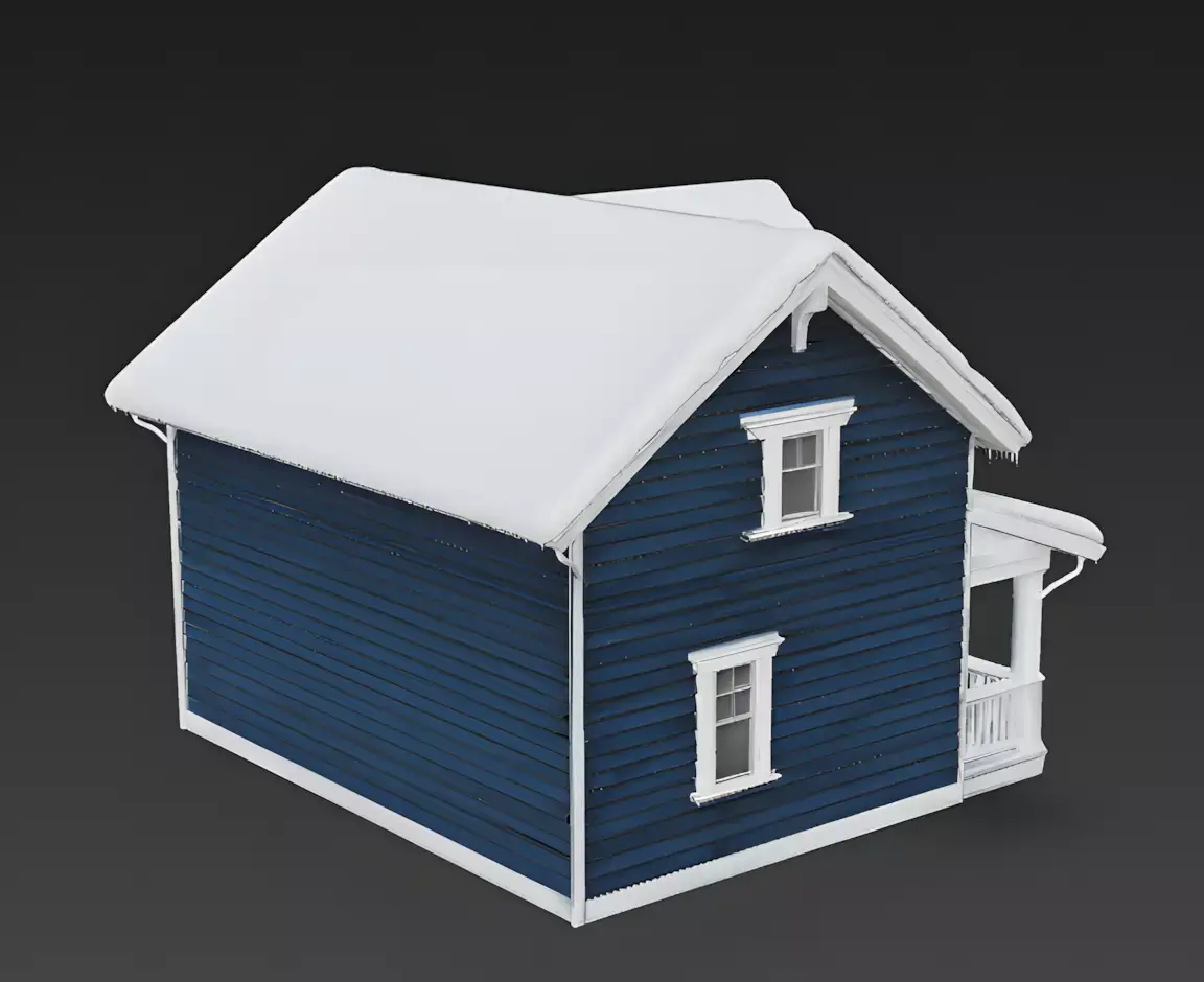 Files Included: FBX, GLB, OBJ, STL, ZIP (Textures). Quick Tip: The Icicles require a material with Transmission enabled to look transparent. The Navy Siding looks best with a subtle Normal Map to make the wood grain texture visible under the dark paint.