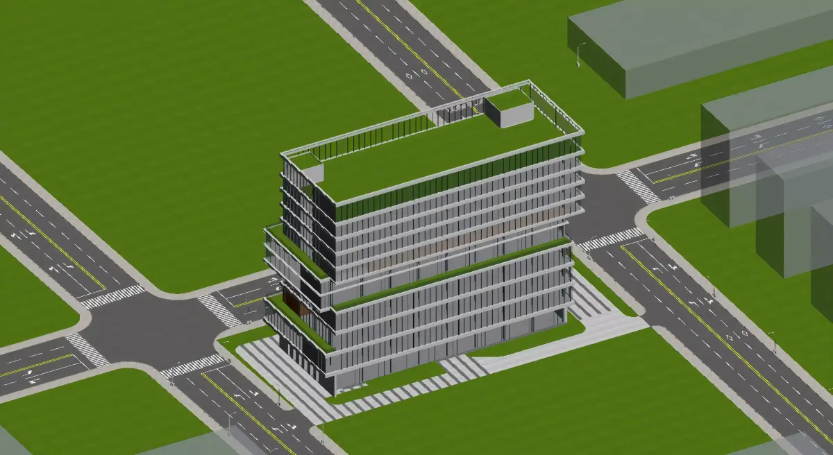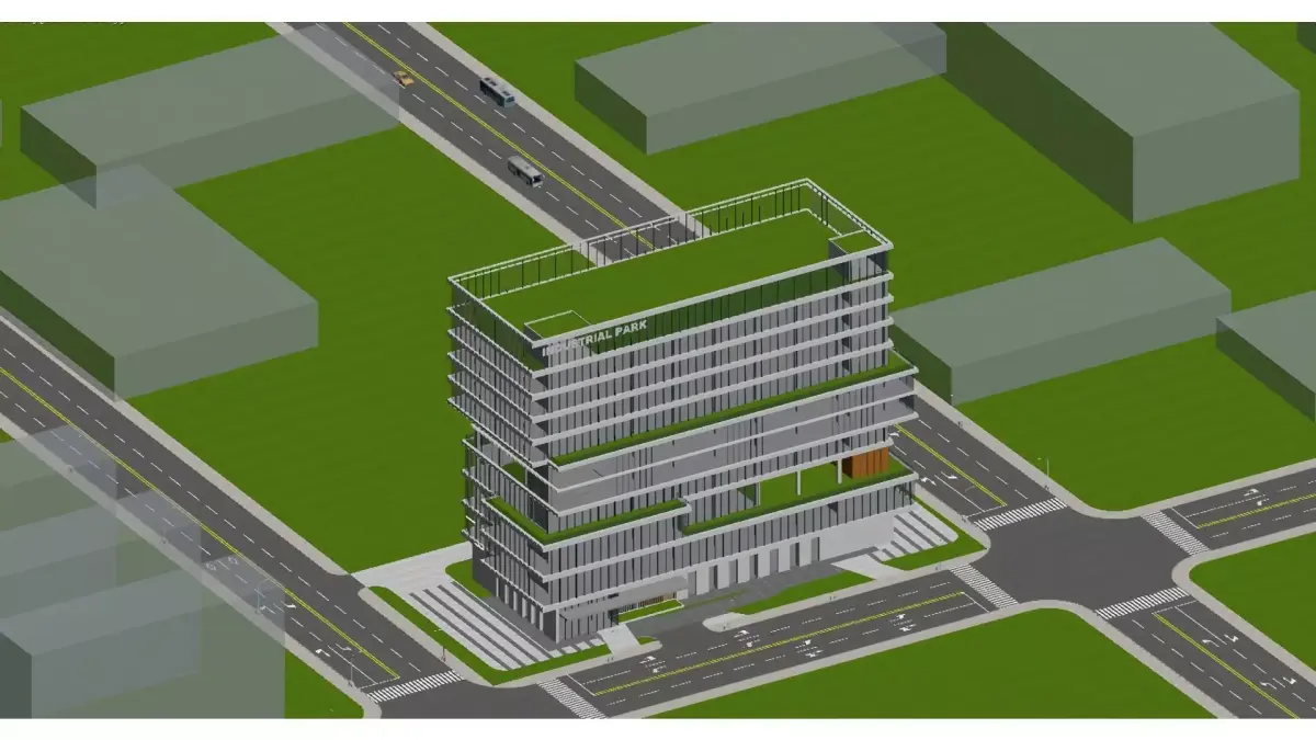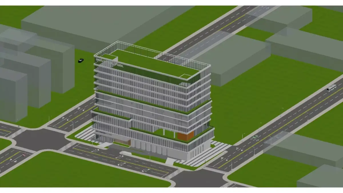 This is a modern office building located in an industrial park. Featuring a large-area glass curtain wall as its main facade, paired with multi-level terraces and rooftop greenery, it presents a concise and stylish architectural style. The ground floor consists of an open and transparent public space. Overall, it integrates office functions with ecological aesthetics, making it one of the representative buildings in the urban business district.