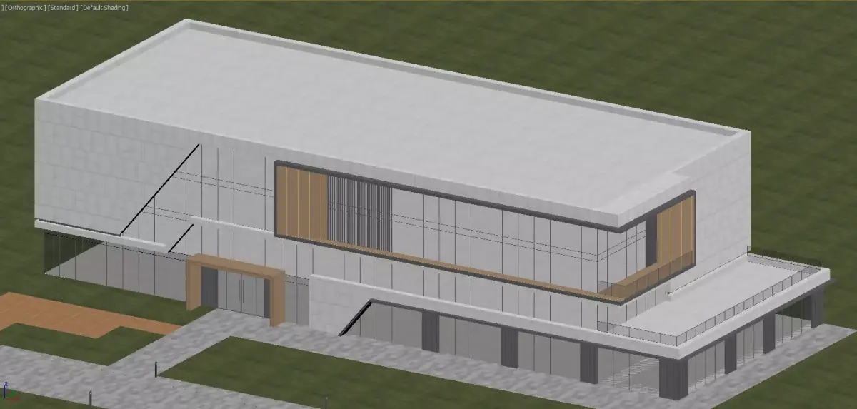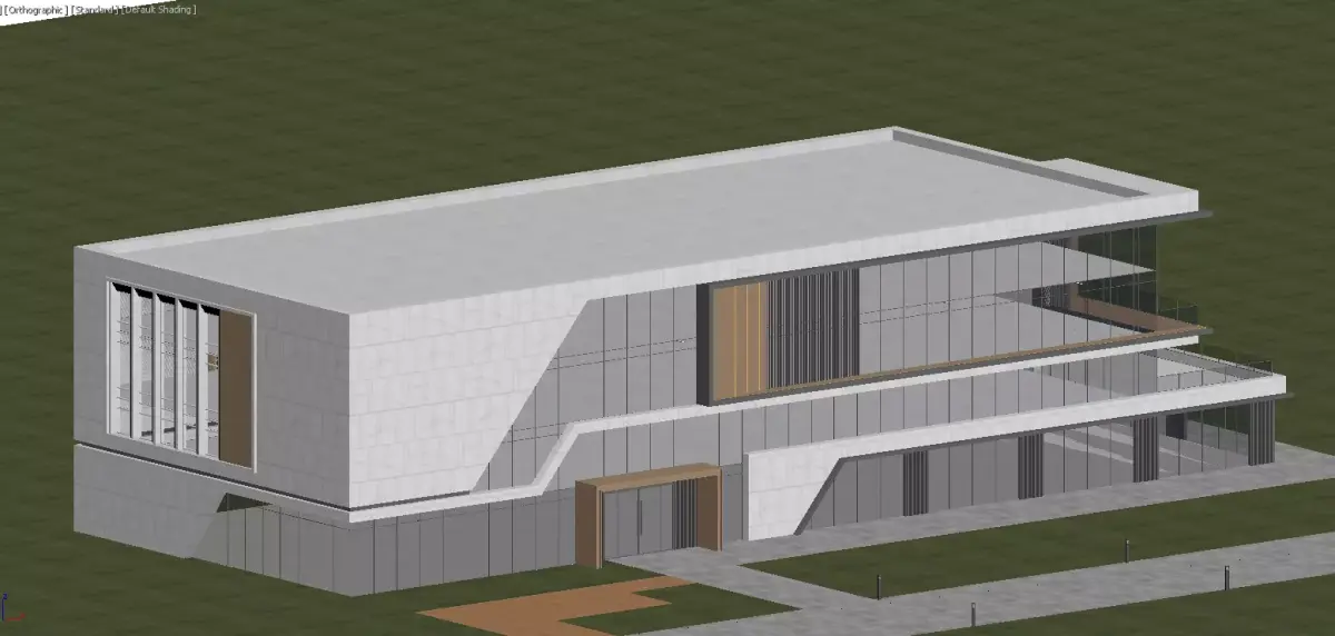 English TranslationThis is a multi-story office building featuring a modern minimalist style. Its facade is composed of large-area glass curtain walls spliced with light gray stone panels, accentuated by warm wood-toned metal trim, creating a crisp sense of geometric division. The overall structure of the building is transparent and lightweight, with the glass reflecting the surrounding lush trees and natural daylight. This design not only ensures ample natural lighting indoors but also enables the architecture to blend seamlessly with the surrounding green landscape. The ground floor adopts a transparent glass porch and open void design, paired with neatly arranged shrubs and street trees, fostering an open, comfortable, and high-quality entrance atmosphere for the office space. Ultimately, it presents an overall image of a high-end, eco-friendly, and modern office building.