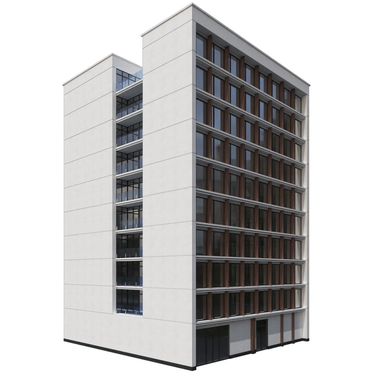 The building has a main view and two side views that include a balcony.This model has details such as window frames and glass railings.No plugins were used in the modeling.This model is modeled with maximum accuracy. And in modeling, an attempt has been made to observe the correct topology. So you will not find any additional Vertex or Edge or Polygon.You can see the accuracy of modeling in wireframe mode in any view.