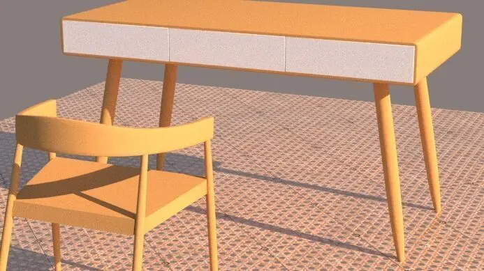 - Materials: High-resolution textures for wood, metal, and glass finishes (e.g., oak woodgrain top, brushed aluminum legs). Materials are realistic and PBR-based, ensuring excellent results under different lighting.