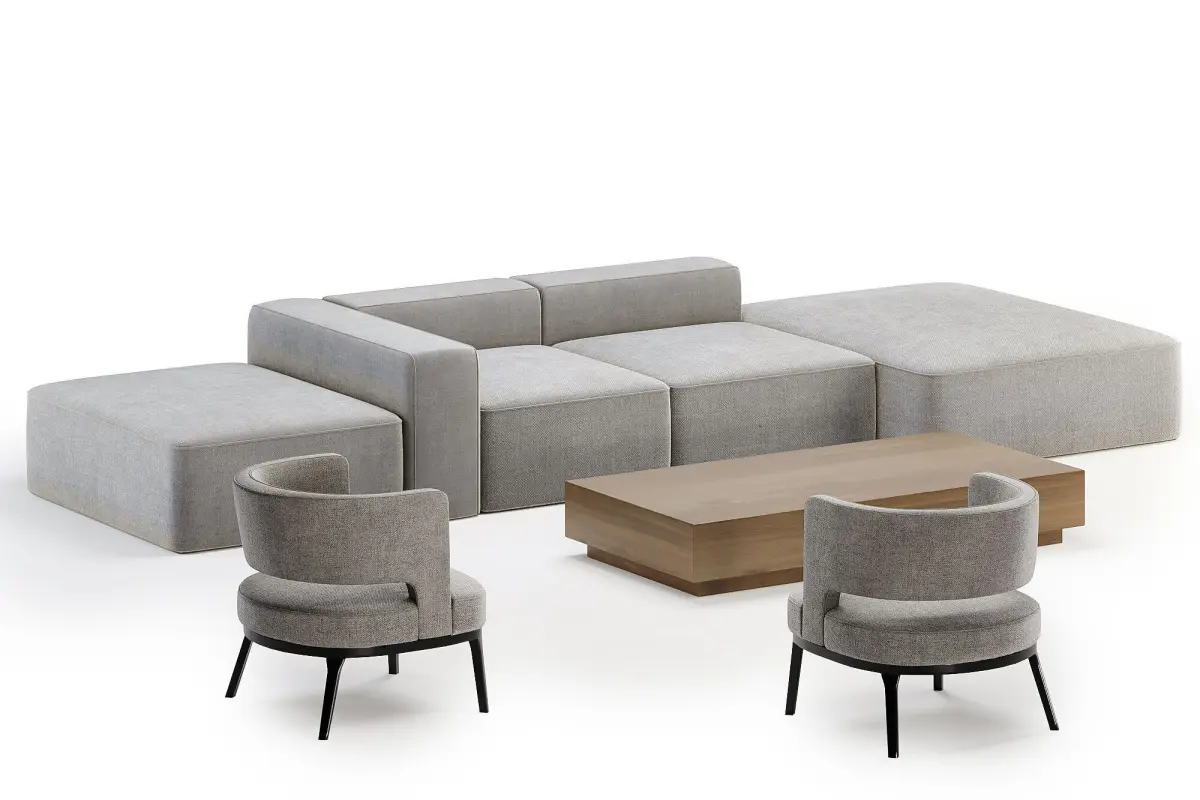 a sofa set with armchair and coffee table