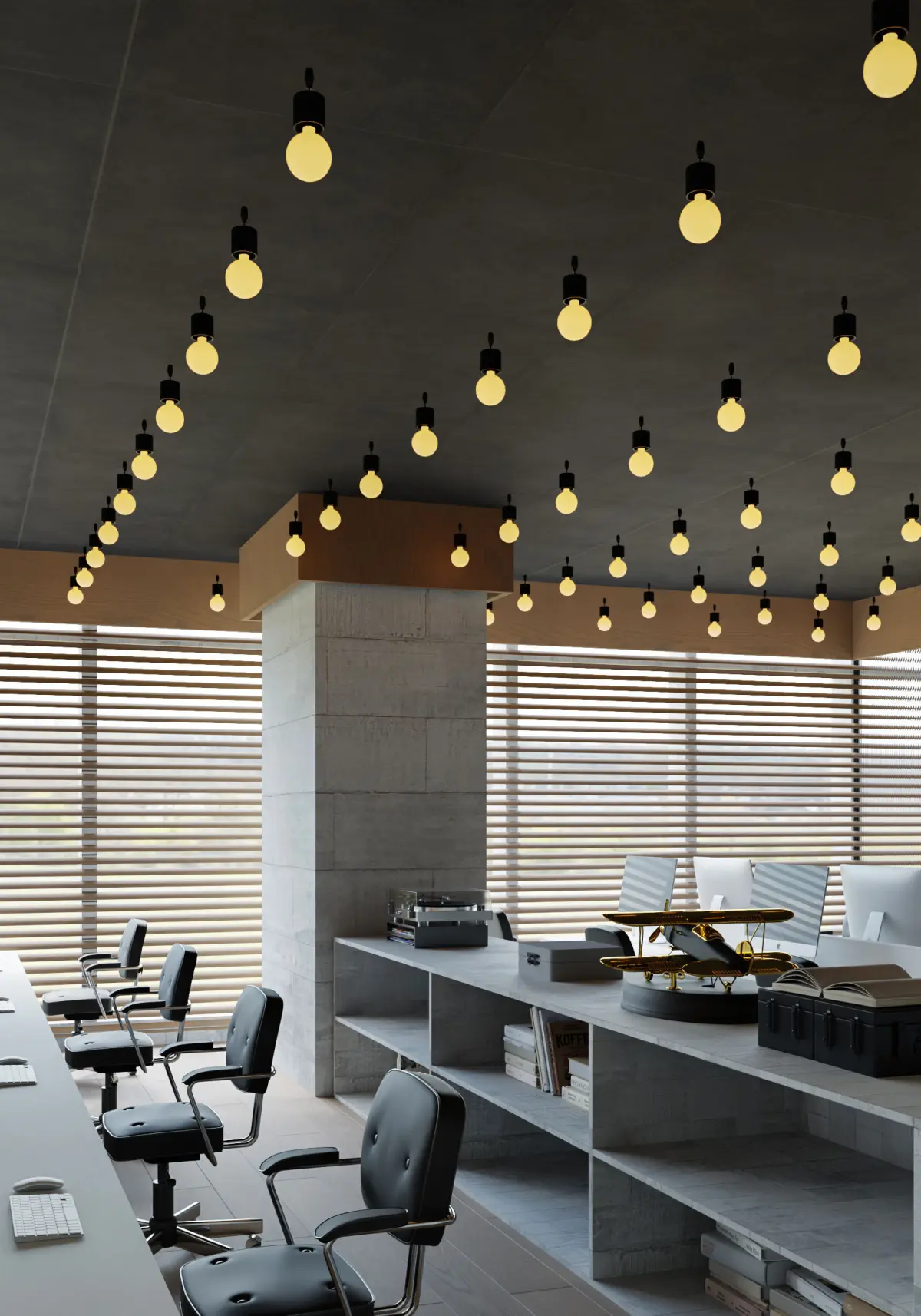 A modern office interior scene that includes an open-plan workspace, a stylish pantry area for tea and coffee, and a functional meeting room with glass partitions. The design emphasizes clean lines, natural lighting, and a professional atmosphere. Perfect for architectural visualization, workplace concept design, and commercial interior rendering.Software: 3ds Max 2020Renderer: Corona RendererFully textured and ready to render.