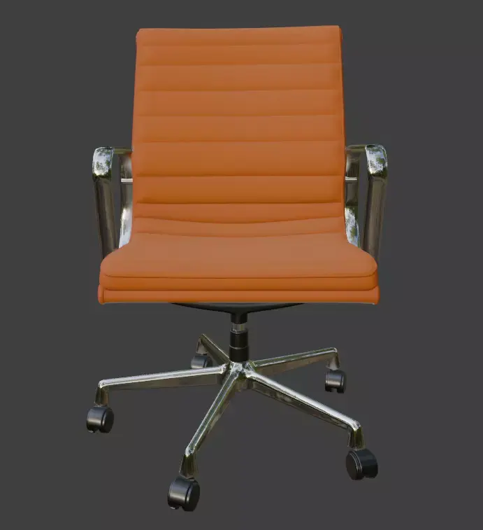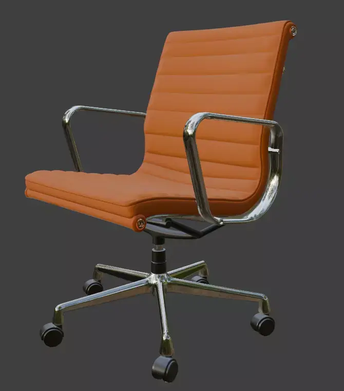 A highly detailed, production-ready 3D model of a premium modern executive office chair with orange leather upholstery and polished chrome base. Perfect for architectural visualizations, office interior renders, game environments, VR/AR projects, or high-end product visualizations.This model features clean topology, fully unwrapped UVs, and PBR materials ready for any render engine. The leather material uses realistic textures including high-resolution diffuse, roughness, normal, and specular maps (4K). All parts are properly named and organized in logical groups for easy editing.