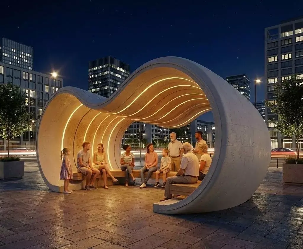 Design Philosophy: This fluid furniture piece is designed to break the monotony of traditional seating. The continuous curved form acts as a sculptural element, making it ideal for high-traffic areas like shopping malls, airport lounges, hotel lobbies, and modern art galleries.