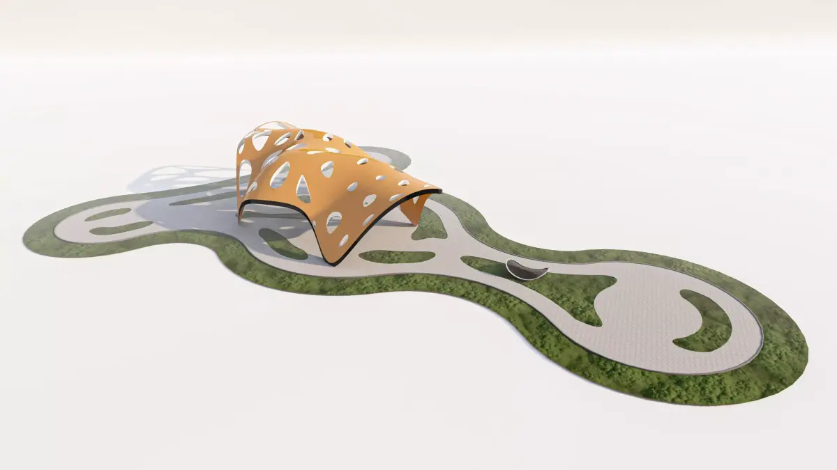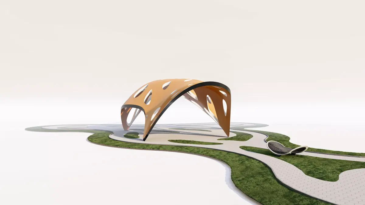 This is an exceptionally high-detail 3D model of a Parametric Pavilion, characterized by its complex, free-form geometry created through generative design. This structure is ideal for high-impact architectural visualization (Arch-Viz), landscape planning, and exhibition space design.
