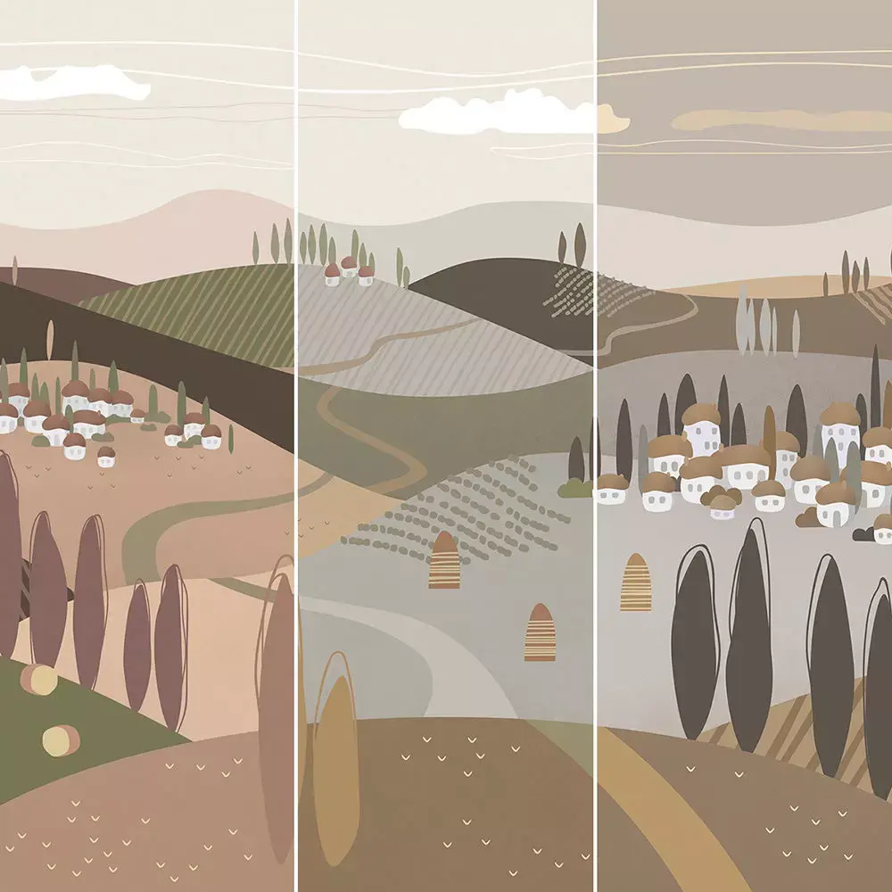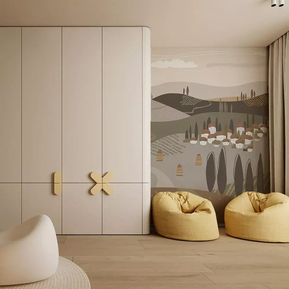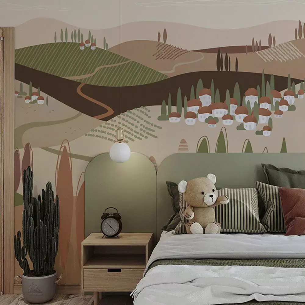 Create a calm, storybook centerpiece with this Pastel Countryside Village Wallpaper Texture Pack, designed for children’s rooms, nurseries, and cozy family spaces. A stylized valley of rolling hills, cypress trees, and clustered village homes unfolds in soft neutrals that complement natural wood, linen textiles, and warm lighting. The pack includes three coordinated colorways—Warm Clay, Soft Olive, and Misty Taupe—so scenes can switch palettes without changing the composition or mood. Each variant is delivered as seamless 4K textures with a complete metal/rough PBR set: BaseColor (sRGB), Normal (OpenGL), Roughness, Ambient Occlusion, and Height/Displacement. Maps are aligned, consistently named, and optimized for large wall tiling, making setup fast in Blender, 3ds Max, Maya, Cinema 4D, Unreal Engine, and Unity. Start with a scale of 1 m per UV unit, then adjust to framing for the best balance between village detail and overall rhythm. The gentle paper‑grain finish and clean vector edges hold up in close‑ups while remaining soothing at distance—ideal for photoreal archviz, VR/AR walkthroughs, and real‑time configurators. Original artwork created for visualization use; no third‑party stock elements. Pair with muted fabrics, rounded furniture, and soft accents to complete a playful yet refined interior mood.