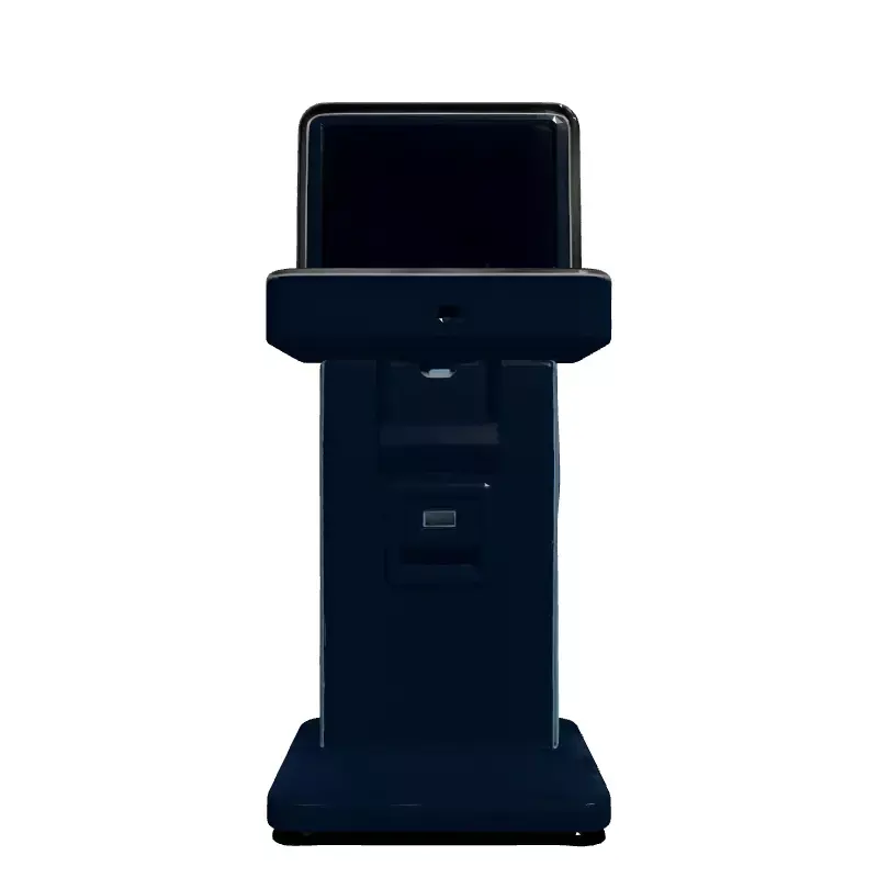 This 3D model depicts a sleek and modern self-service payment kiosk. Ideal for visualizing retail spaces, banks, or other commercial environments. Suitable for game development, architectural visualization, AR/VR experiences, or digital art projects. Files are available in GLB, OBJ, FBX, and STL formats. Optimized for both real-time applications and high-quality static renderings. This model features clean topology, is UV unwrapped, and includes PBR textures for realistic material representation. Its low-poly design ensures smooth performance in real-time environments while maintaining visual fidelity. The kiosk is designed with a modern aesthetic, featuring a large interactive screen, card reader, and fingerprint scanner. Perfect for adding a touch of futuristic technology to your projects. This versatile model is ready for immediate integration into your scenes.