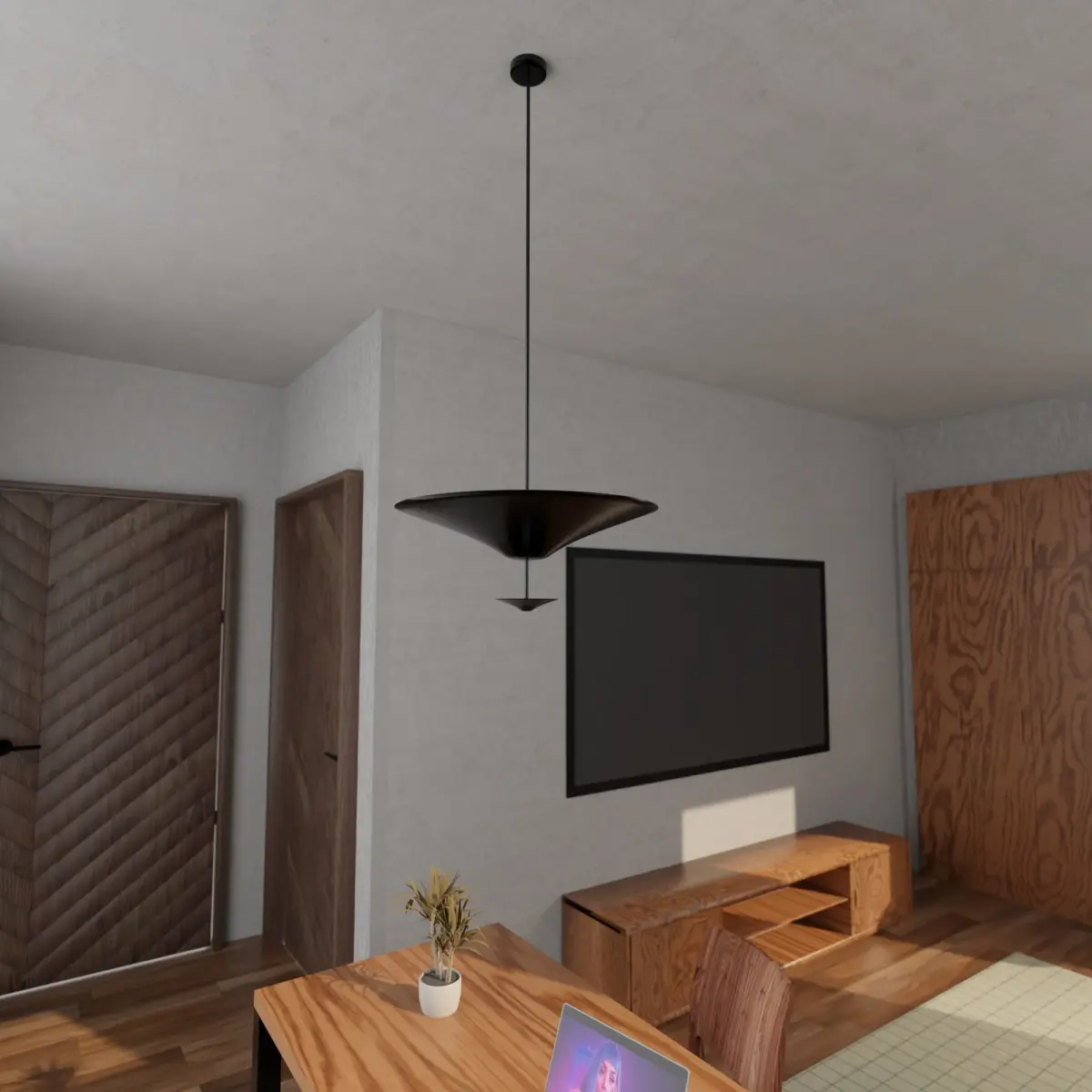 This is a Pendant Light 2 or can be known as Ceiling Light. Inspired by modern design style, suitable for all different room interior spaces. This model is designed to be easily changed color as you like, recommend colors are black, white and pastel.