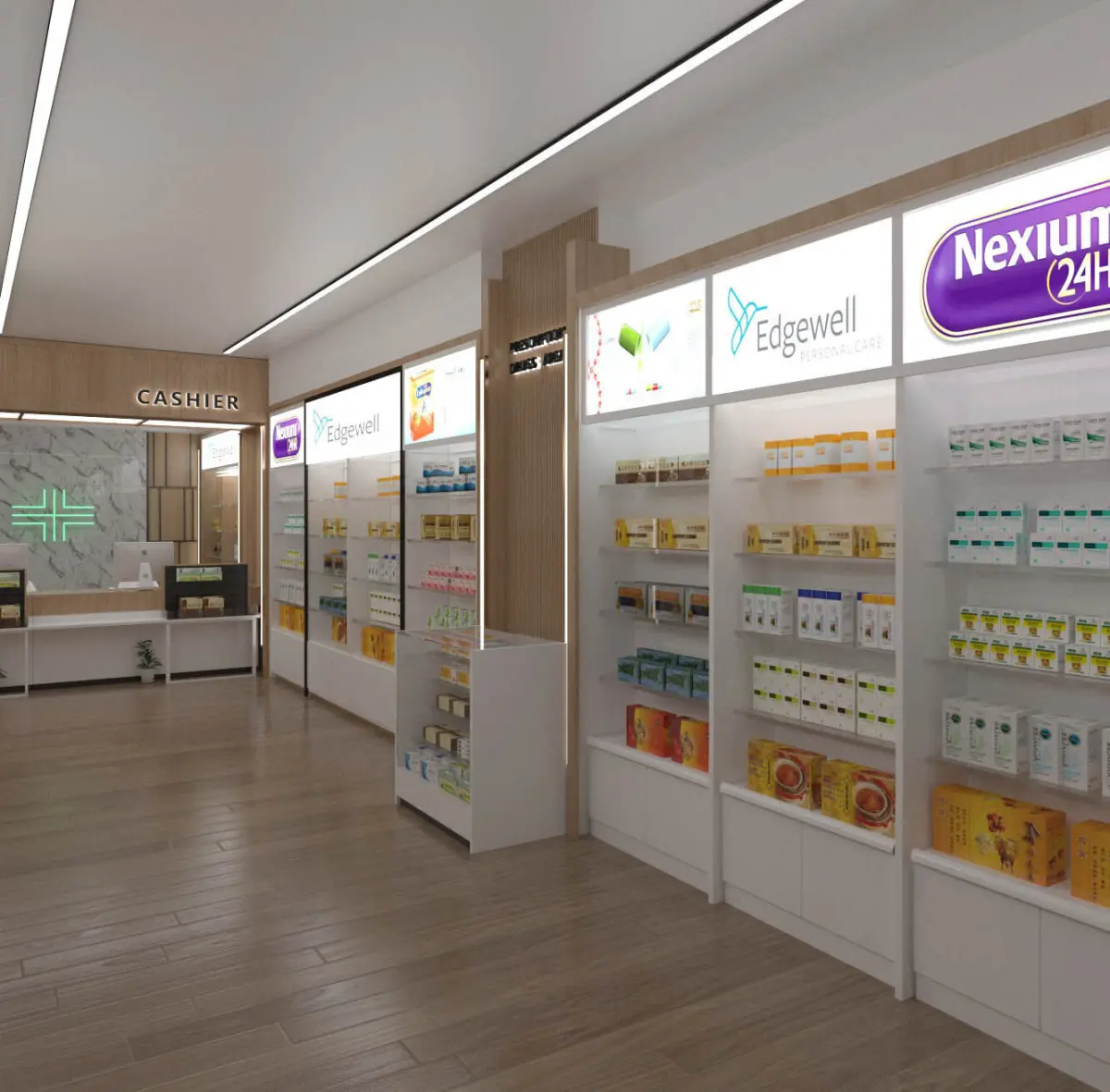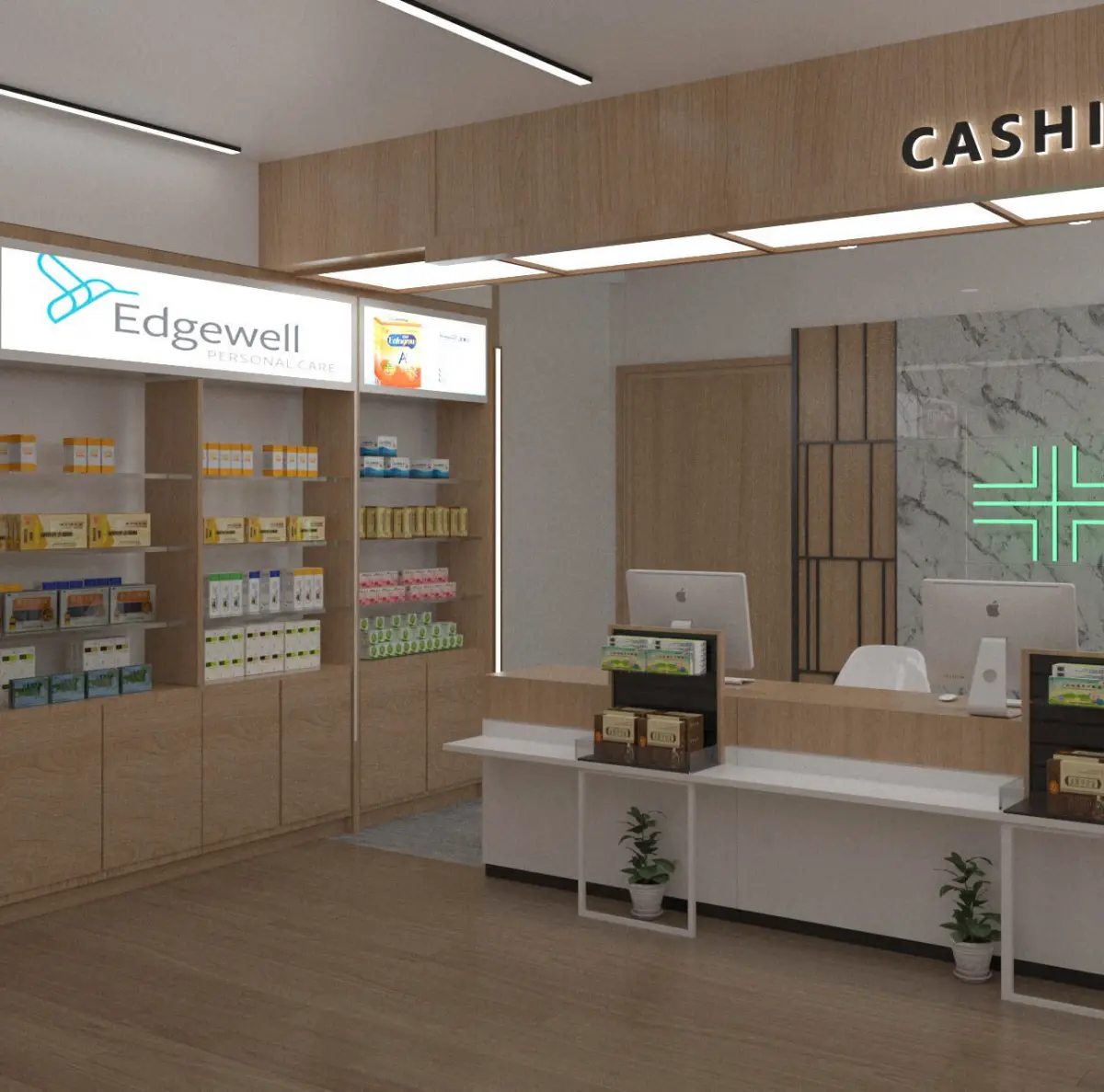 Modern Pharmacy Interior | 3D Model | V-Ray + 3ds Max | Clean Retail Medical Store DesignThis high-quality 3D scene presents a modern pharmacy interior with a sleek, organized layout designed for commercial and healthcare use. Rendered with V-Ray, the model includes professional materials, lighting, and real-world furniture arrangements suitable for pharmacy visualization, retail design presentations, or architectural walkthroughs.Built with 3ds Max + V-Ray RendererIncludes full lighting and camera setupClean geometry, organized layersReal-world scale and PBR-ready materialsHigh-resolution textures includedInterior Highlights:Customer Service Area with counter, signage, and modern finishesWall Shelving Units for medication and product displayStorage Cabinets and Drawers for pharmacy inventoryBack Counter Area for pharmacist workspace and suppliesCeiling lighting: Recessed LED panels, accent lightingMaterials: Gloss white, wood accents, clean ceramic flooringPerfect For:Commercial & retail interior visualizationPharmacy and medical clinic design proposalsArchitectural marketing and brandingInterior design portfolios