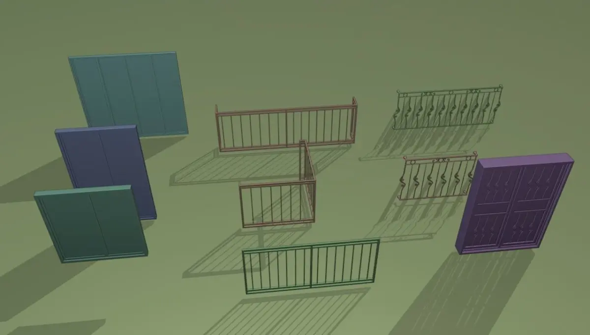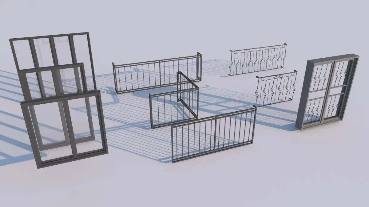 5 different types of railing, 3 different window and 1 type of door. It can be used in home, office, store and shops. There is no coating, color and gloss changes can be made on the ready material. It can be converted into low poly.