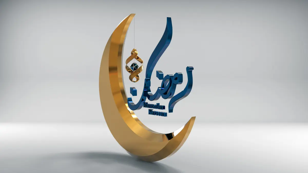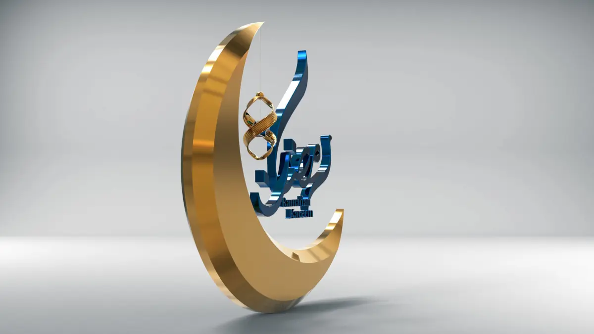 A modern Ramadan lantern with the word Ramadan Kareem in English and the word Ramadan in Arabic, you can change the shape of the lighting inside the lantern or put a light inside