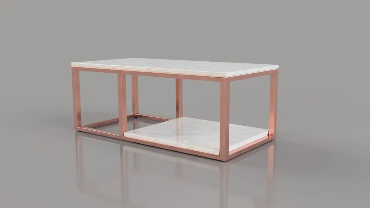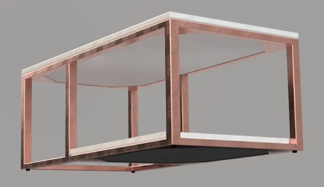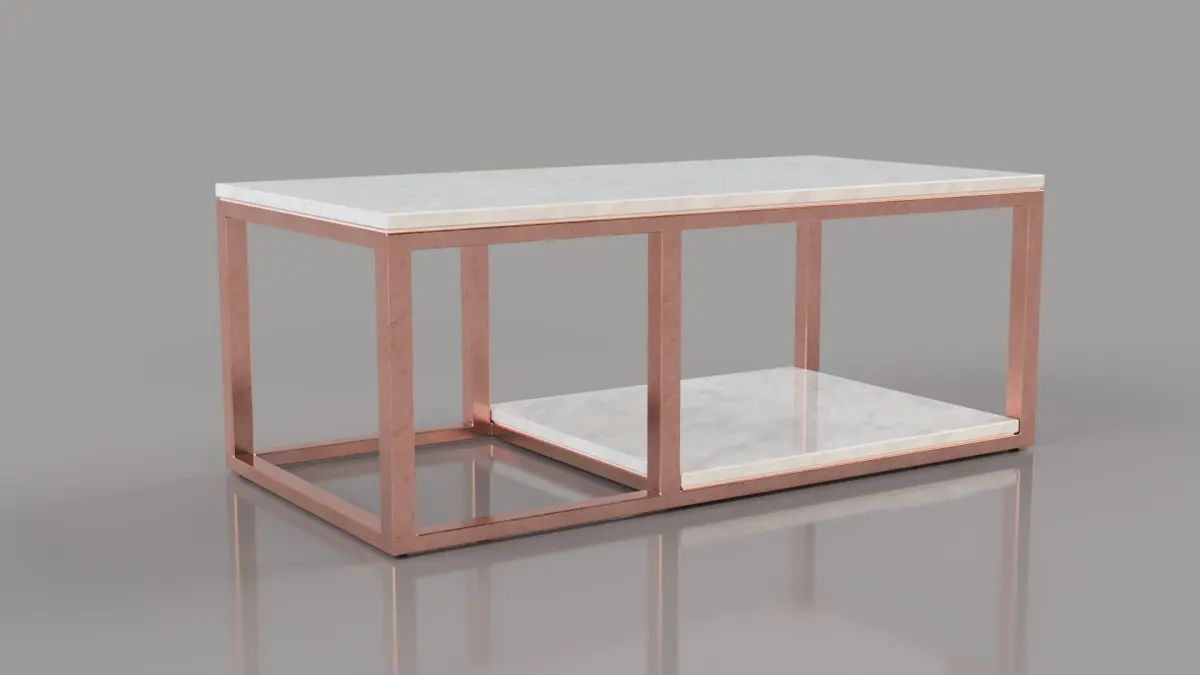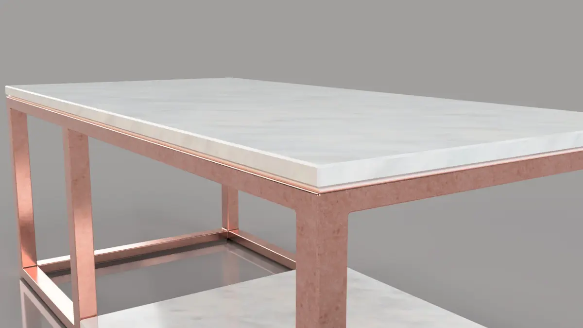 A modern rectangular marble table with metal legs and nylon glides (and metal structure and support for marble for production).The dimensions of the table are:length 1000 mmwidth 500 mmheight 380 mmThe model is highly accurate and based on the manufacturers original dimensions and technical data.Created with Fusion 360.