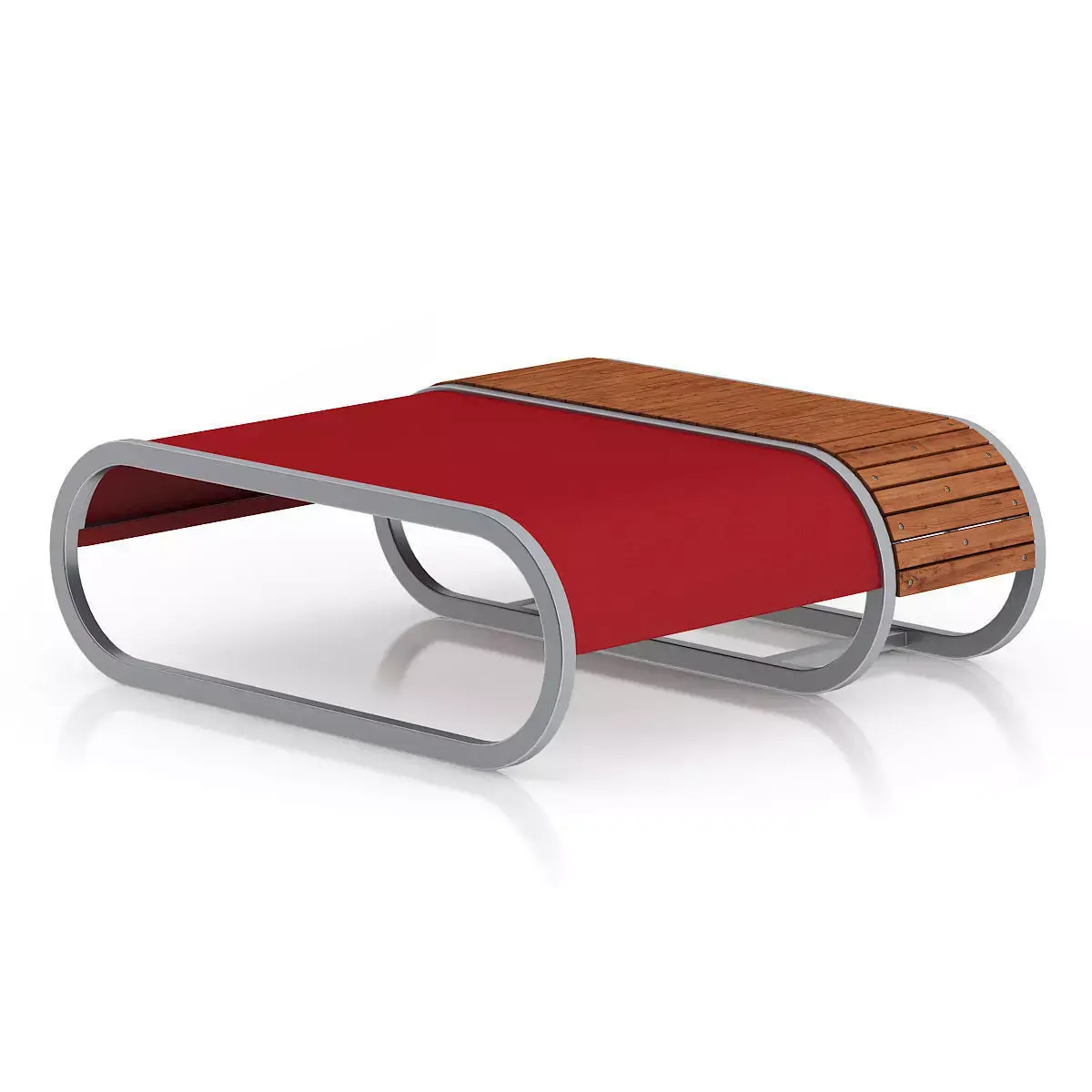 3D model of modern red footrest with wooden bench on the side and metal frame. Compatible with 3ds max 2010 or higher and many others.
