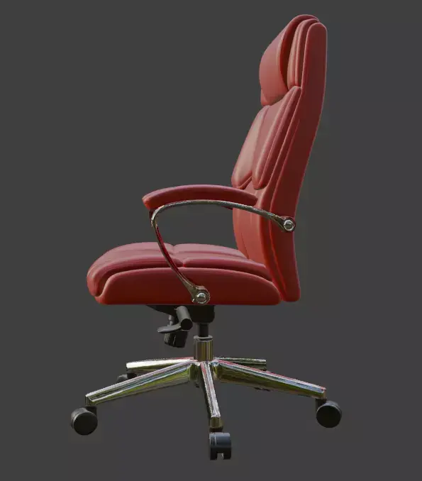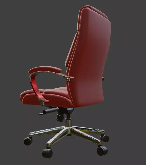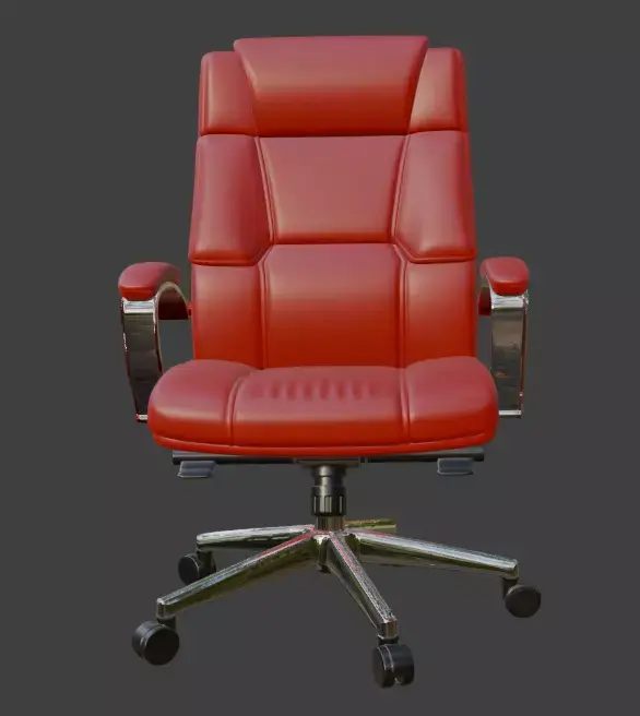 A highly detailed, production-ready 3D model of a premium modern executive office chair with red leather upholstery and polished chrome base. Perfect for architectural visualizations, office interior renders, game environments, VR/AR projects, or high-end product visualizations.This model features clean topology, fully unwrapped UVs, and PBR materials ready for any render engine. The leather material uses realistic textures including high-resolution diffuse, roughness, normal, and specular maps (4K). All parts are properly named and organized in logical groups for easy editing.Includes adjustable height mechanism, tilt function, and rolling casters — all modeled with accurate real-world scale and mechanical detail.