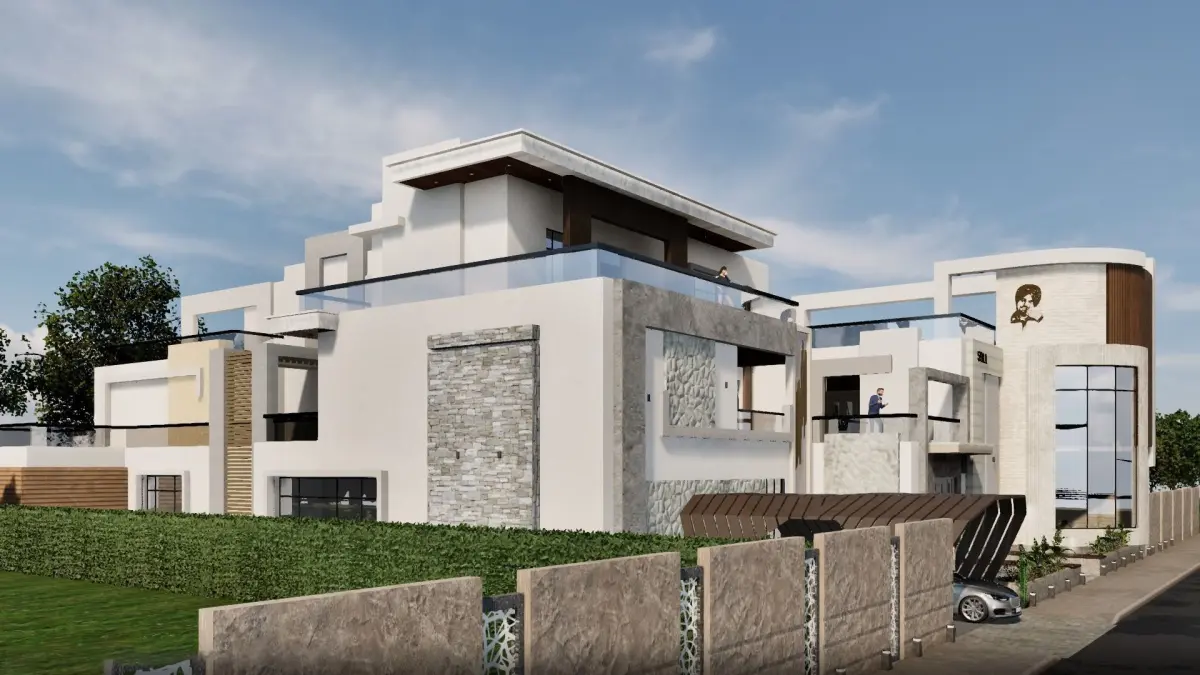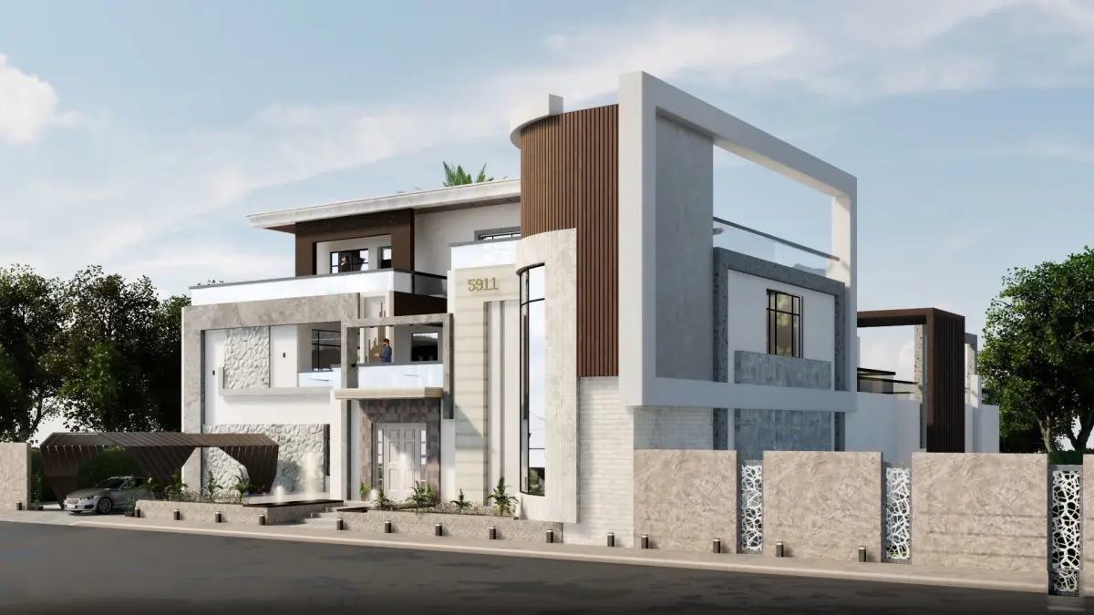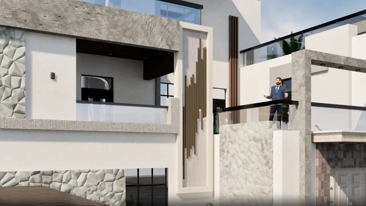Modern 3D model of a spacious suburban house with a sleek white exterior and a welcoming front porch.The house features multiple floors, a two-car garage, and a beautifully landscaped yard.The interior is bathed in natural light from the large windows and offers plenty of space for comfortable living.This versatile model is perfect for a variety of uses, including architectural visualization, real estate marketing, and game development.