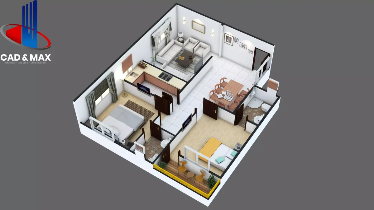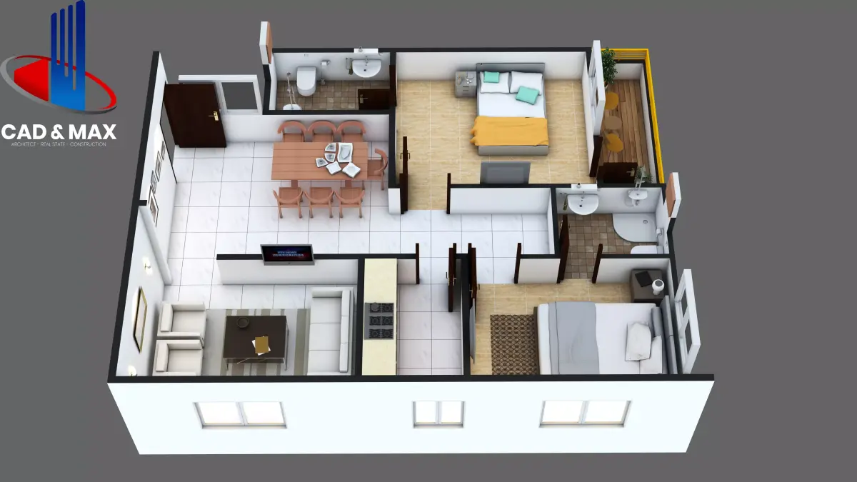 Modern Residential 3D Floor Plan | 2 Bedroom Apartment | 3D Cut Floor Plan