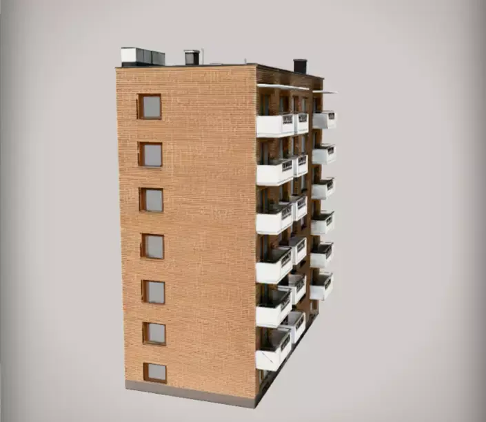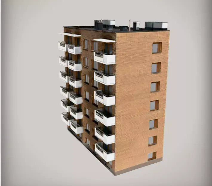 A professionally designed, high-poly 3D model of a modern residential apartment building. This model features contemporary architectural elements, including large balcony windows, sleek structural lines, and a realistic exterior facade. It is optimized with 2K resolution PBR textures, making it ideal for high-quality architectural visualizations where performance and detail must be balanced.