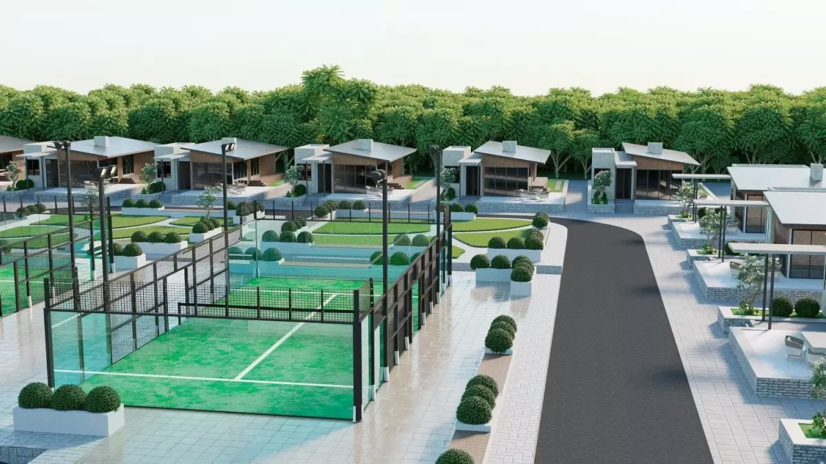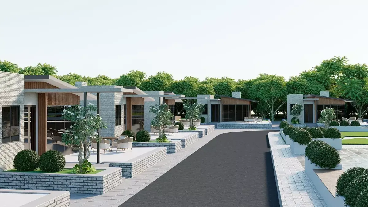 This 3D model showcases a modern residential housing complex with a clean masterplan layout, including private houses, internal roads, green spaces, and sports courts. Created using 3ds Max and rendered with Corona Renderer, the model features realistic materials, lighting, and landscaping. Ideal for architectural visualization, real estate presentation, and urban planning projects.