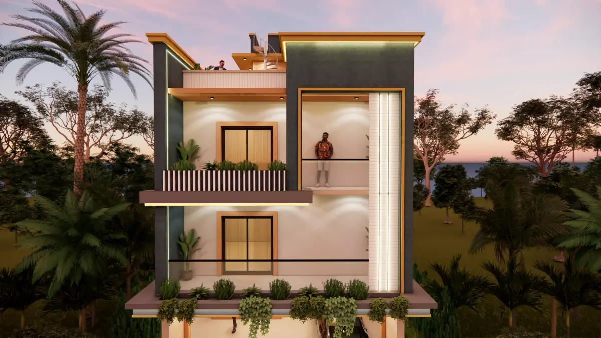 Key Features:• Modern independent residential house• Compact villa design for small plots• Contemporary façade with balconies and planters• Clean SketchUp topology, easy customization• Enscape-ready exterior model