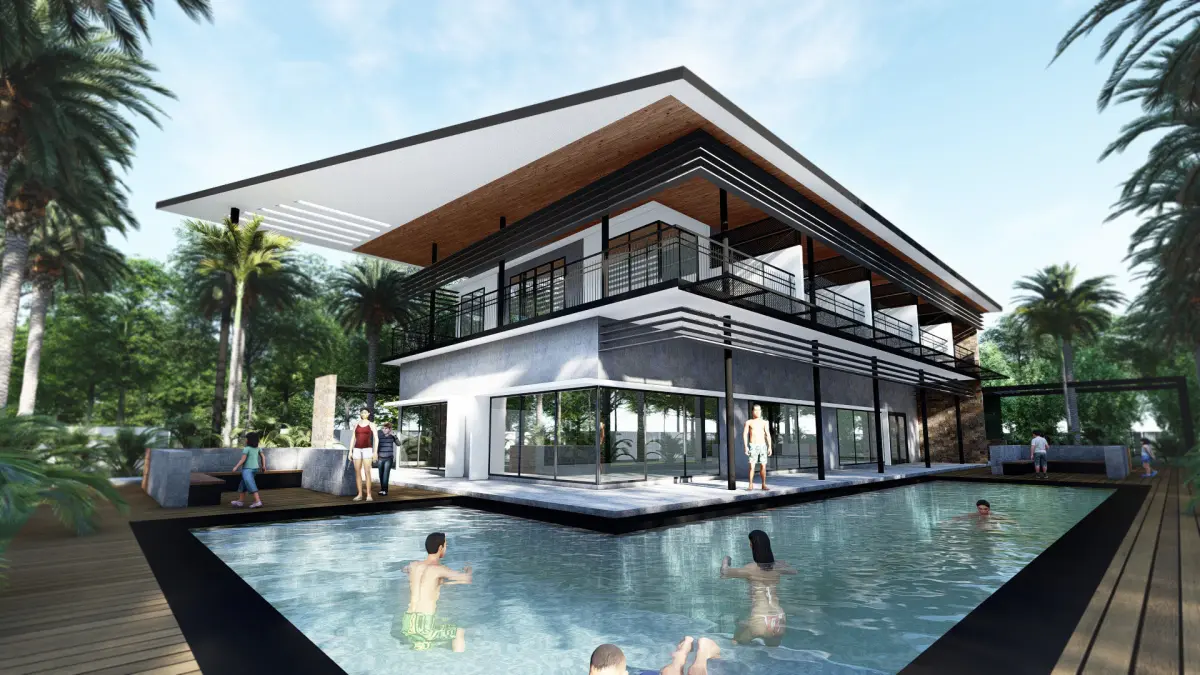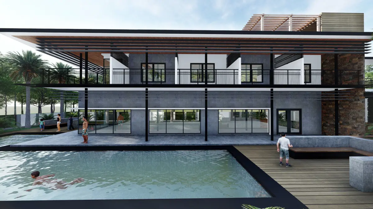 A modern rest house or mansion or guest house concept with swimming pool and roof top and bar. This concept is designed for four families, preferably siblings. The model is a low-poly 3d composed mostly of components using Sketchup Pro 2017. Rendered in Lumion 8.5 with a video on Youtube. See link (feel free to share and subscribe).