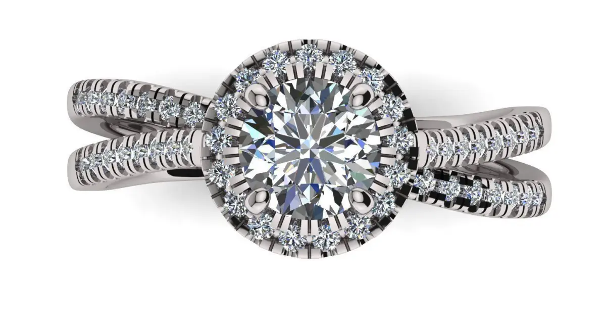 modern style ring with 6 mm. center diamond and microprong setting