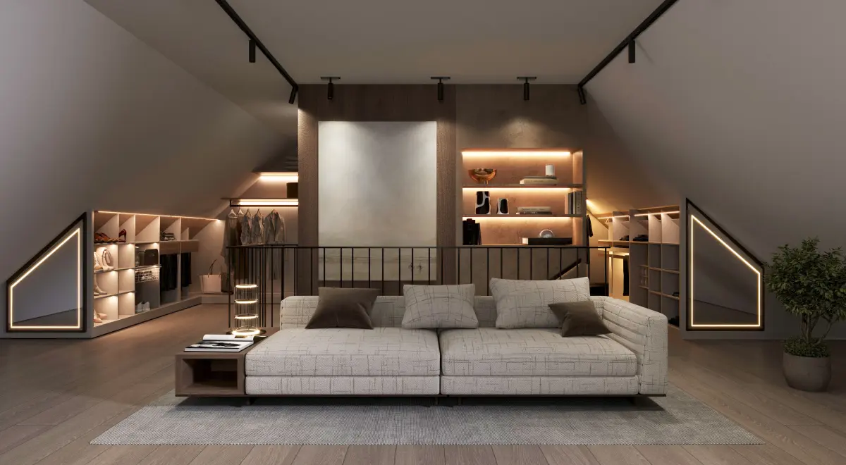 Modern Rooftop Bedroom Suite | Bedroom + Living + Walk-In Closet + Bathroom | 3ds Max + Corona RendererThis modern rooftop suite 3D scene is a complete, high-end interior environment designed to showcase an elegant private escape. It includes a bedroom with skyline views, a cozy living area, a walk-in closet, and a luxurious bathroom — perfect for realistic interior presentations, architectural visualization, and furniture staging.Built in 3ds Max + Corona RendererReal-world scale, photoreal textures, and optimized lightingFully layered and organized for easy customizationRender-ready with professionally placed camerasIdeal for architectural presentations, portfolios, or virtual staging Interior Highlights: Bedroom Area:Floor-to-ceiling windows with city/sky viewKing-size bed with layered beddingAccent lighting and bedside tablesCustom headboard or feature wall Living Area:Sofa set or lounge chairsCoffee table, bookshelf, TV or art wallSoft rug and greenery for warmthWalk-In Closet:Open wardrobe units or sliding wardrobesShelving for shoes, drawers for accessoriesIntegrated lighting and seating bench Bathroom:Freestanding tub or walk-in showerFloating vanity with large mirrorHigh-end fixtures and neutral tilesOptional glass partition between areasPerfect For:Luxury residential interior designRooftop suite and penthouse visualizationReal estate CGI marketingVirtual tours and immersive client presentationsProduct staging for beds, bathtubs, lighting, and storage systems