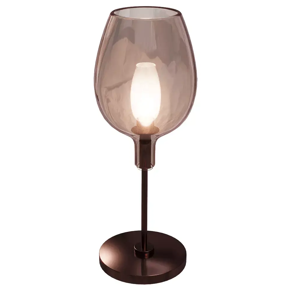 This premium 3D model presents a contemporary table lamp featuring a rose-tinted glass shade in a distinctive wine-glass silhouette, elegantly supported by a bronze metal stem and base. The lamp is designed to bring a touch of sophistication and ambient charm to interior visualizations. Perfect for living rooms, bedrooms, restaurants, bars, or stylish workspaces, this model is crafted for realistic rendering and easy customization.