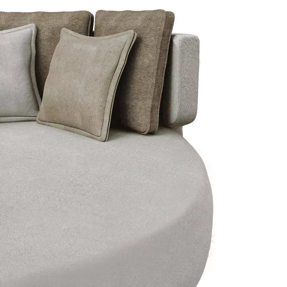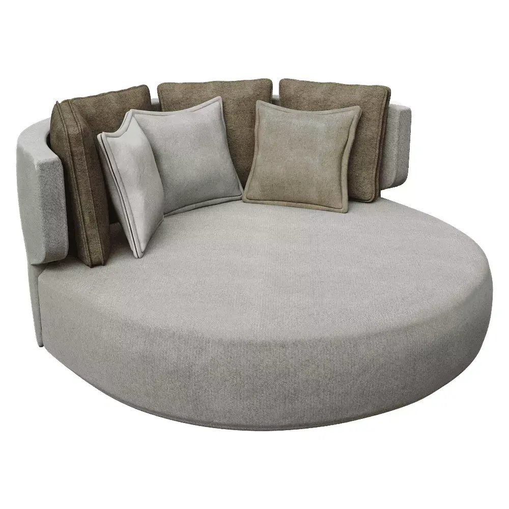 Introducing a luxurious round lounge sofa 3D model, designed to deliver comfort and sophistication in any 3D interior visualization. This elegant circular couch features a soft light fabric base, encircled by textured neutral back cushions in two tones — ideal for high-end residential or hospitality renders.