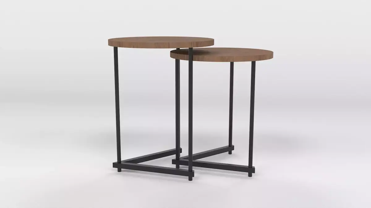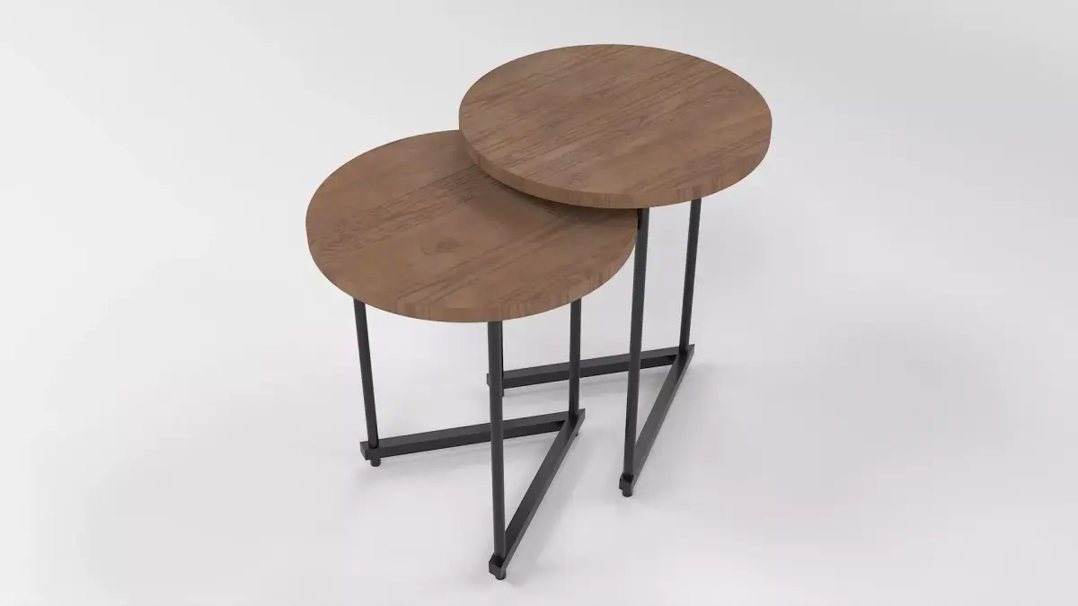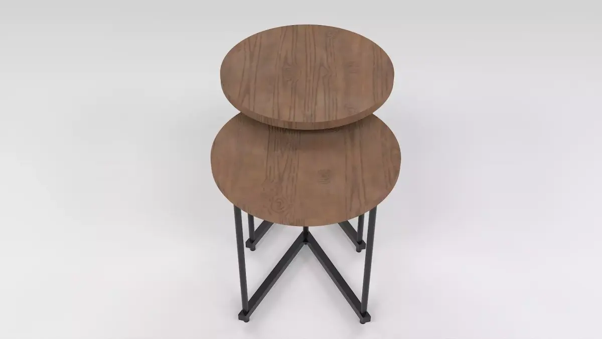 This Modern Round Nesting Side Table Set features a minimal design with wooden tabletops and a sturdy black metal frame. The two tables nest smoothly, making them ideal for space-saving layouts.Perfect for living rooms, offices, cafés, hotels, and modern interiors, this model is accurately scaled with clean geometry, suitable for architectural visualization, interior design, and product rendering.