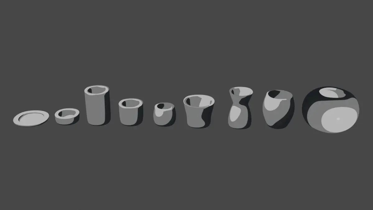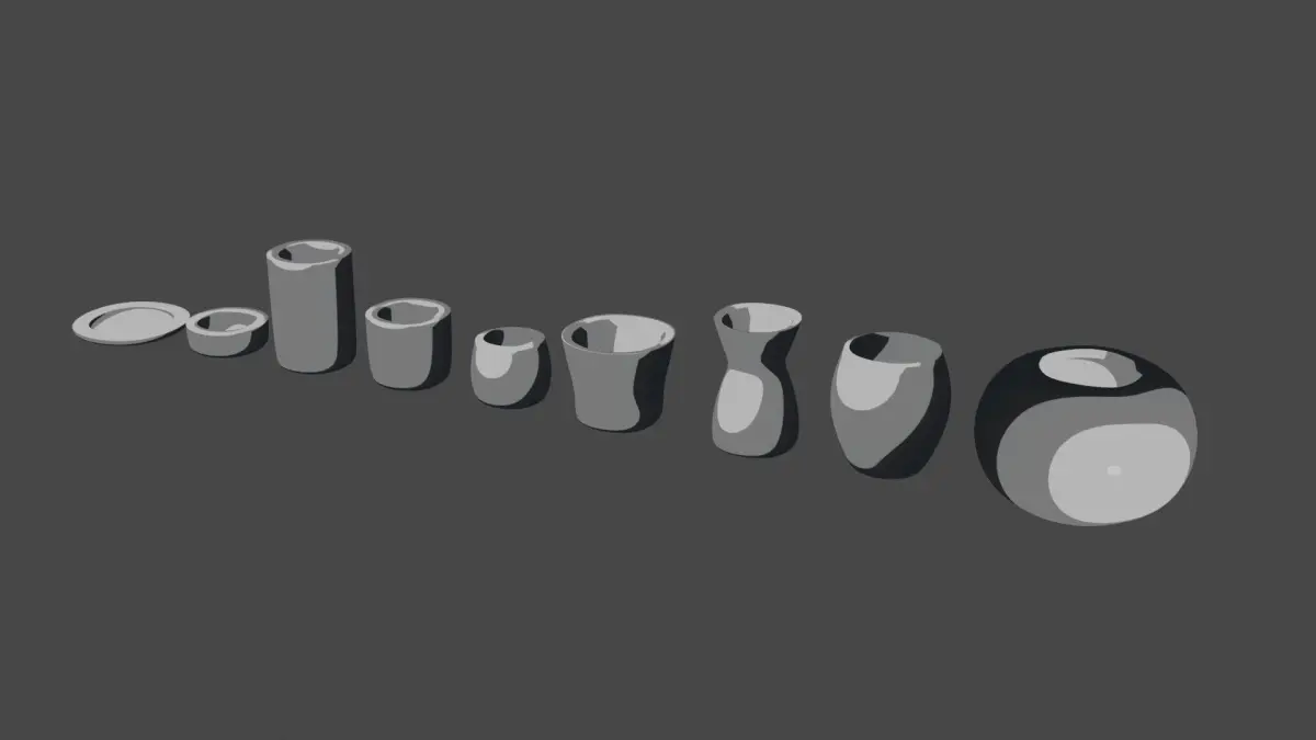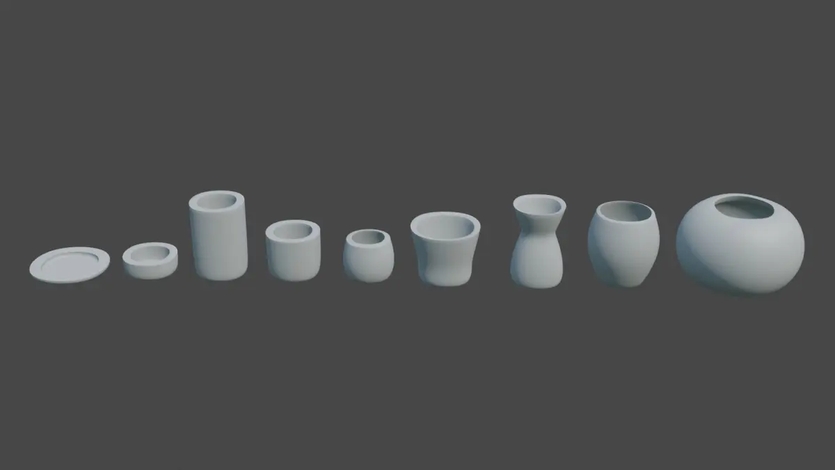 Modern rounded crockery set with 9 different vase-types. You can add textures and material, the UVs are not overlapping. The fine geometry allows you to edit it easly adding more details.Perfect to use both in interior and exterior design to add glasses, dishes, cups, crockery, plant vases and decorative vases to your scene giving a final and special touch to the project.