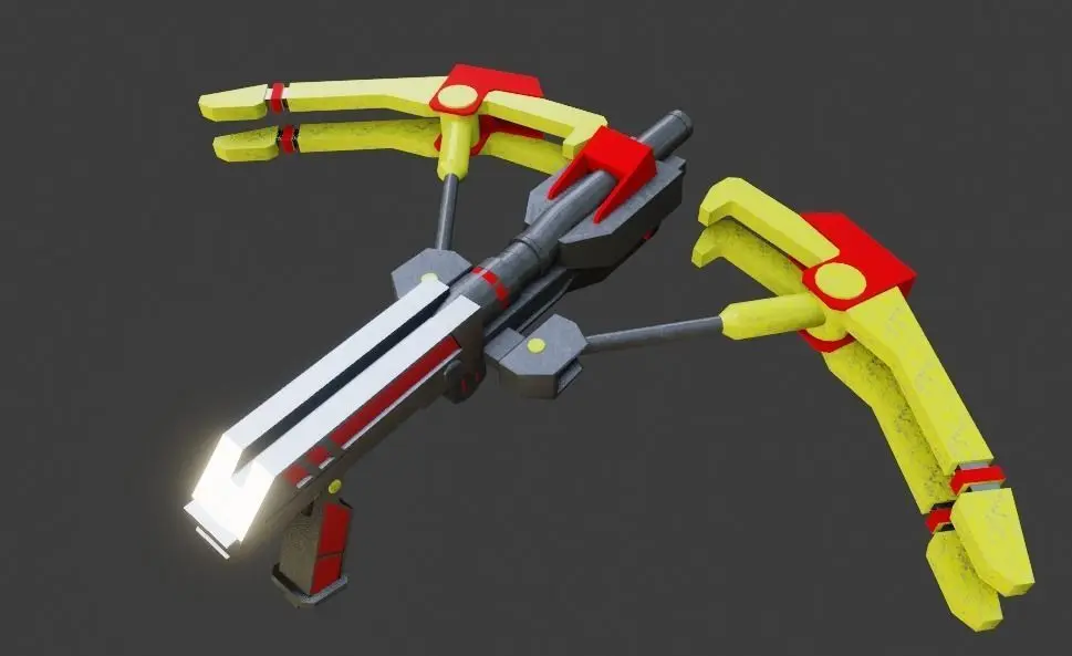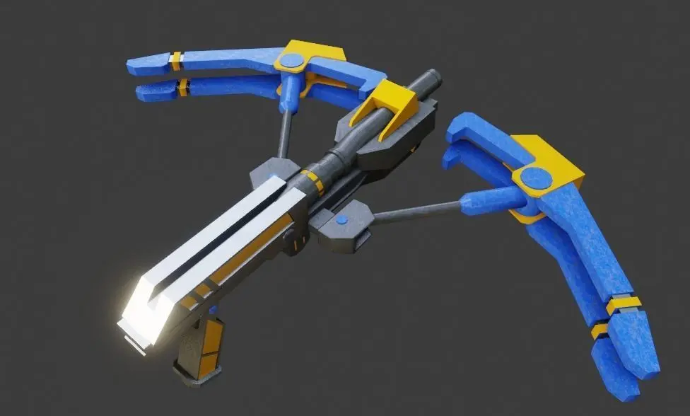 Modern sci fi crossbow hand gun low poly 3d model design in Blender 2.9 render in Eevee.bowcaster in 4 different body color red, blue, green and yellow , specially design for sci fi shooting games.compitable with unity3d, unreal engine, cryengine and many other gaming softwre!Optimized for mobile devices android and ios.